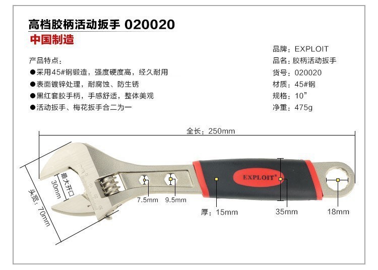 6-24 인치 미국 조절 가능한 렌치 오픈 엔드 렌치 하드웨어 수리 자동차 수리 도구 020101 개발