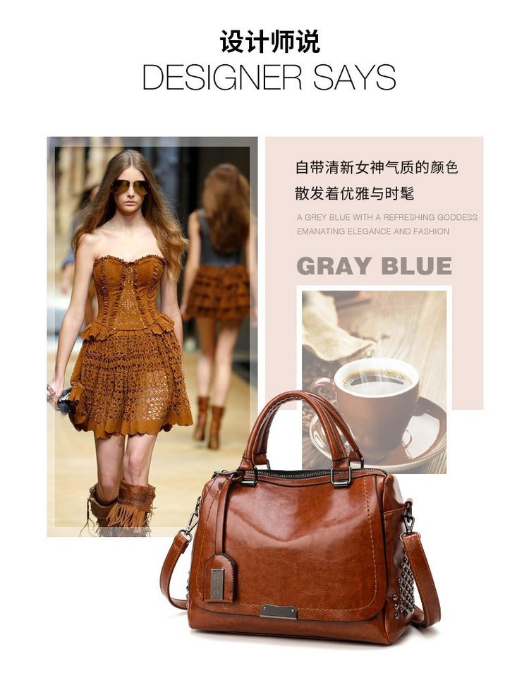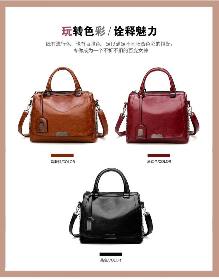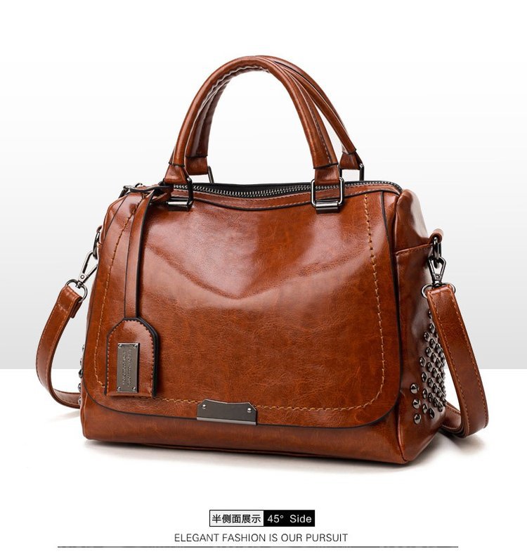 대외 무역 가을과 겨울 여성 가방 스티칭 오일 가죽 핸드백 복고풍 유럽과 미국 여성 숄더 백 사첼 도매 세대