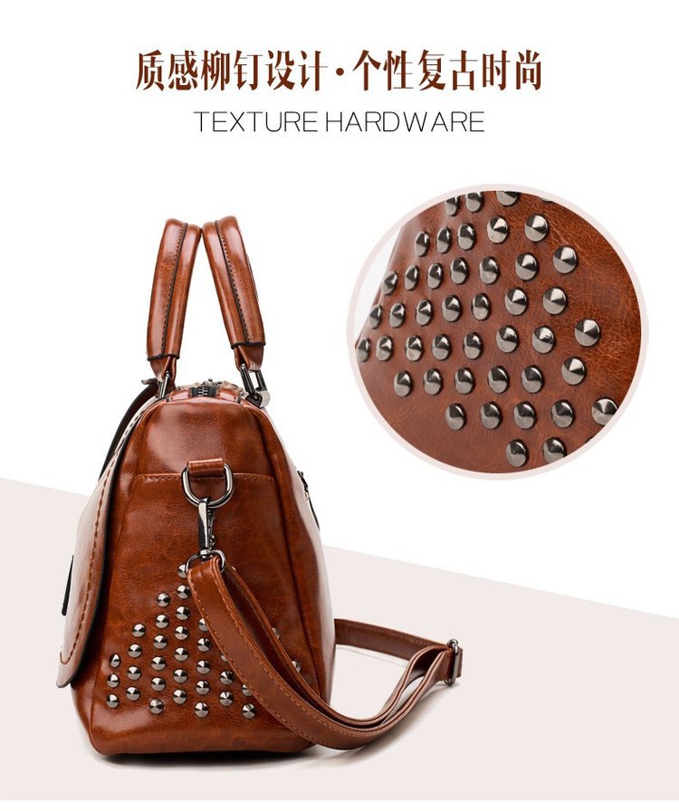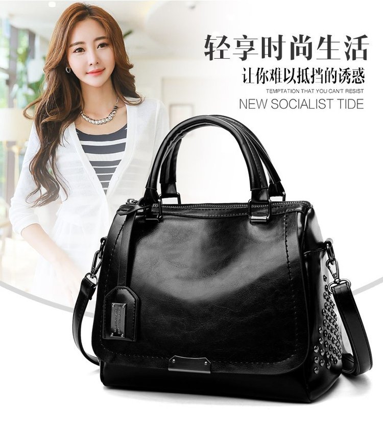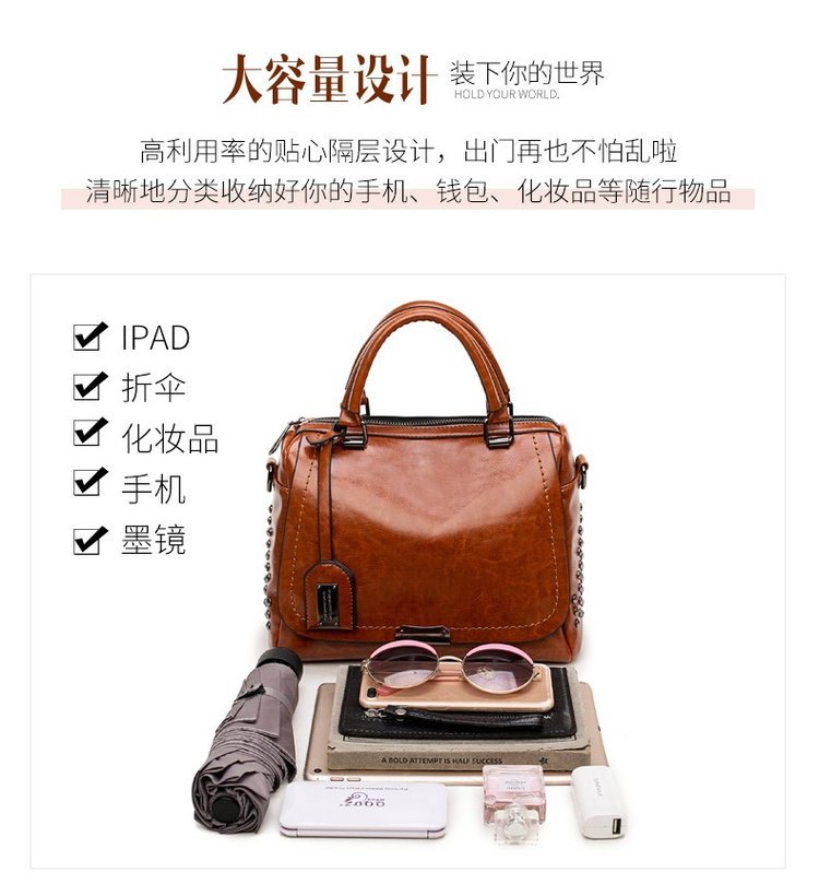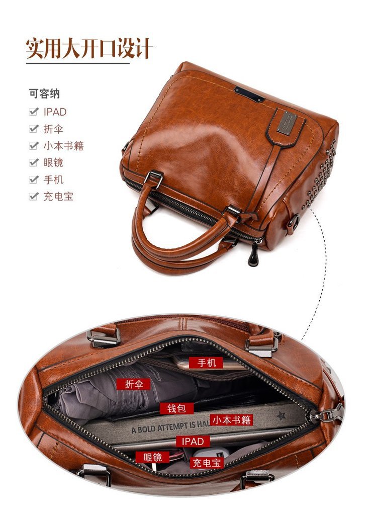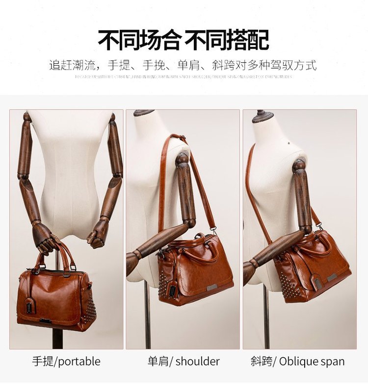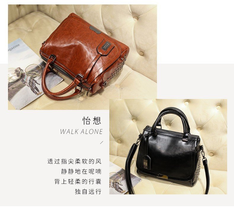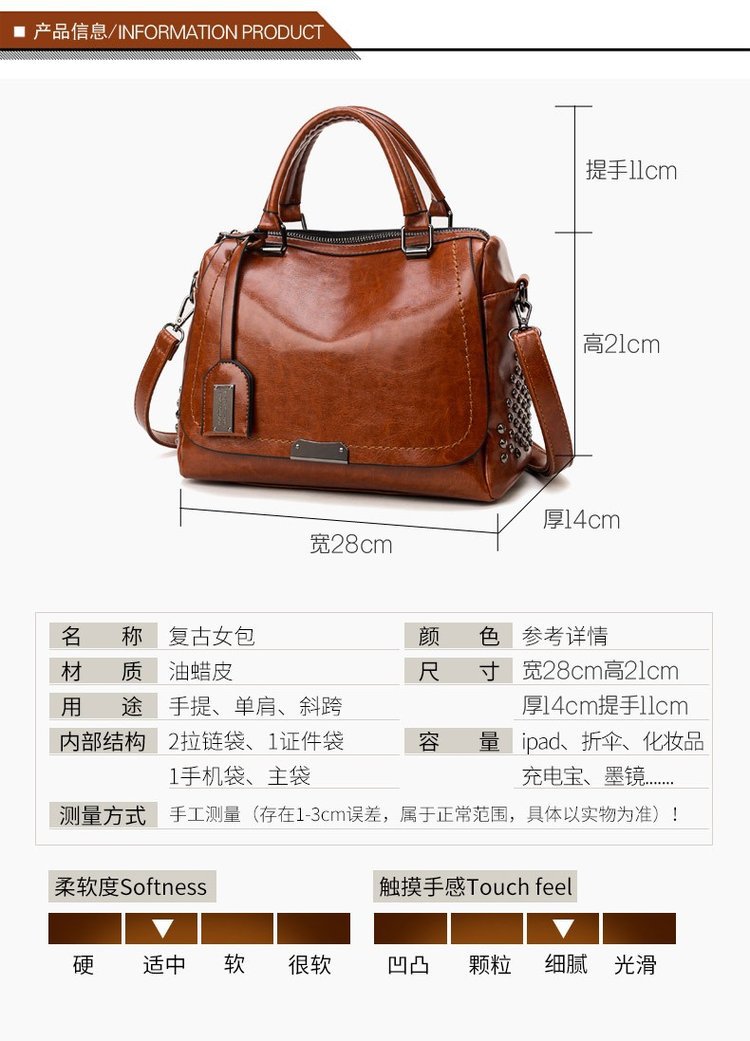 대외 무역 가을과 겨울 여성 가방 스티칭 오일 가죽 핸드백 복고풍 유럽과 미국 여성 숄더 백 사첼 도매 세대스토어 가기