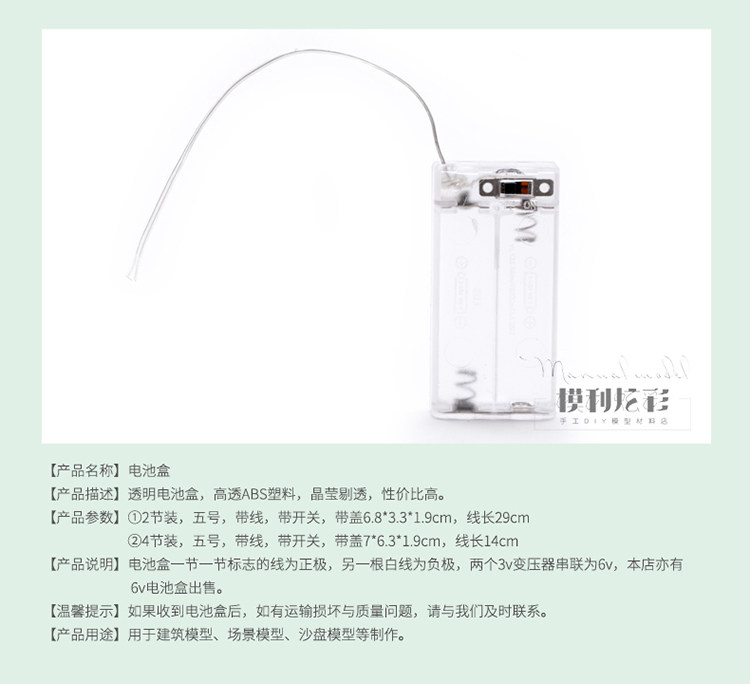• 배터리 박스 6V는 AA 배터리 4개를 수용할 수 있습니다.