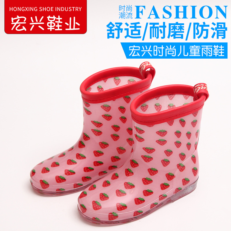 전문 가공 작은 딸기 크리스탈 장화 PVC 크리스탈 프린트 어린이 장화스토어 가기