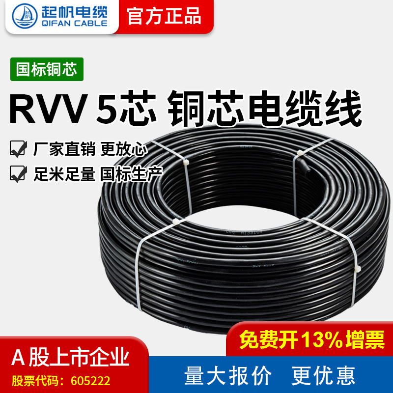 [Sail 케이블 공장 직접 판매] RVV 5 코어 0.5-16 평방 미터 국가 표준 구리 코어 시스 케이블 엔지니어링 케이블스토어 가기