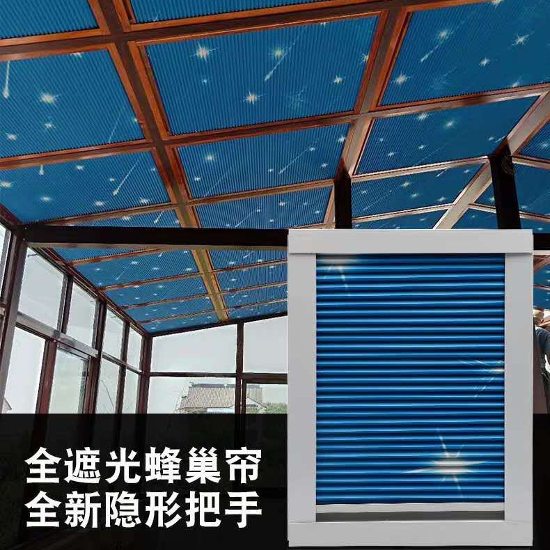 썬 룸 차양 탑 커튼 전기 캐노피 벌집 커튼 자외선 차단제 수동 벌집 커튼 전체 차양 유리 방 천장스토어 가기