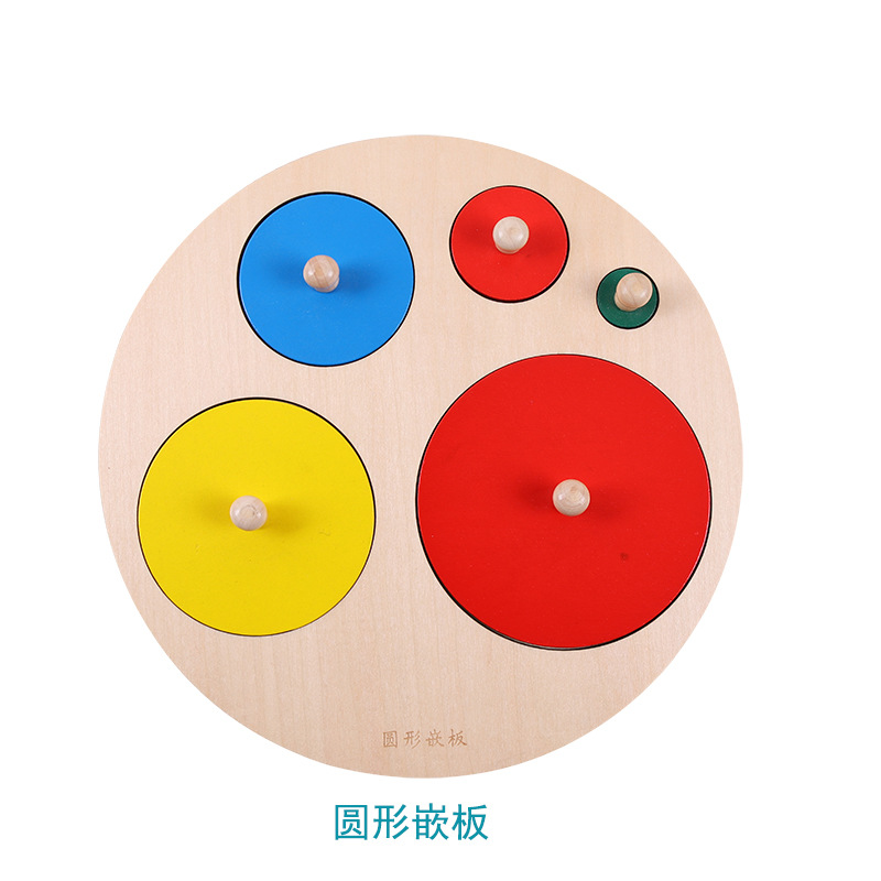 몬테소리 교육 보조 기하학 패널 나무 손 스크래치 보드 퍼즐 원형 모양 일치하는인지 조기 교육 장난감