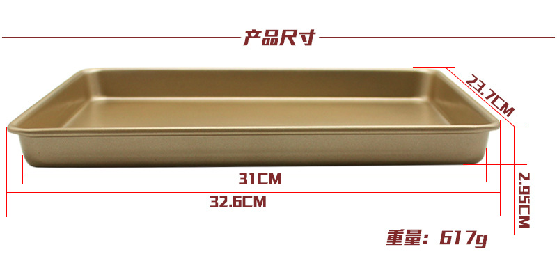 황금 직사각형 얕은 베이킹 트레이 12 인치 탄소강 바베큐 트레이 누가 트레이 피자 트레이 금형 베이킹 도구스토어 가기