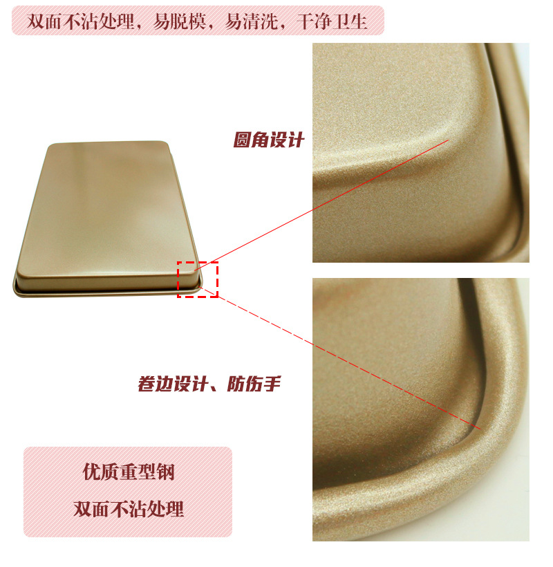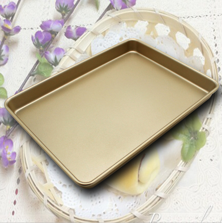황금 직사각형 얕은 베이킹 트레이 12 인치 탄소강 바베큐 트레이 누가 트레이 피자 트레이 금형 베이킹 도구