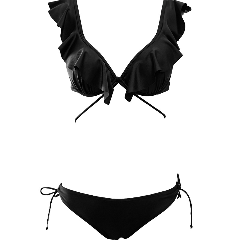 녹색 교수형 목 강철 지원 유럽과 미국 스타일 로우 웨이스트 트라이앵글 비치 홀리데이 비키니 비키니 여성의 작은 가슴 푸시 업