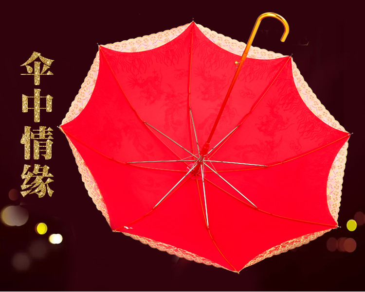 빨간 우산 신부 우산 수 놓은 천 백 새 Chaofeng 반자동 긴 손잡이 양산 신부 동반 용품 도매