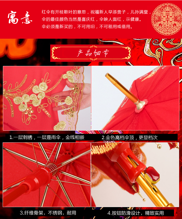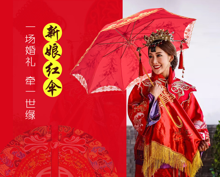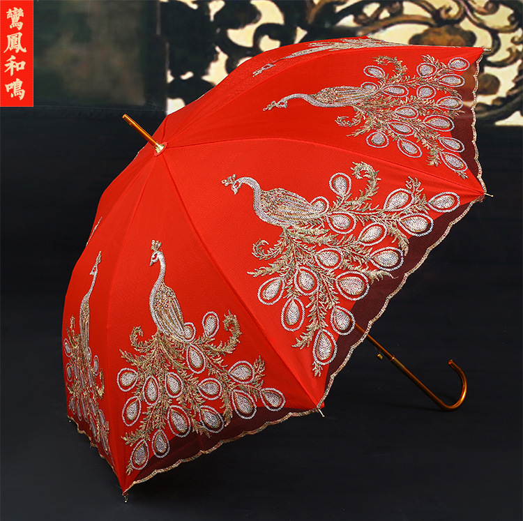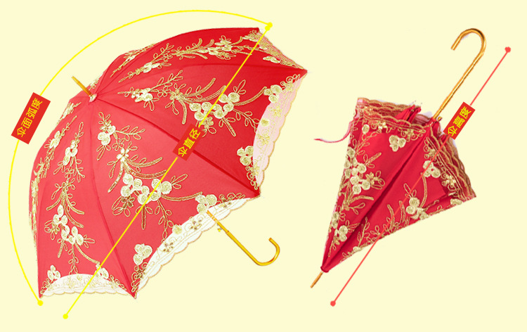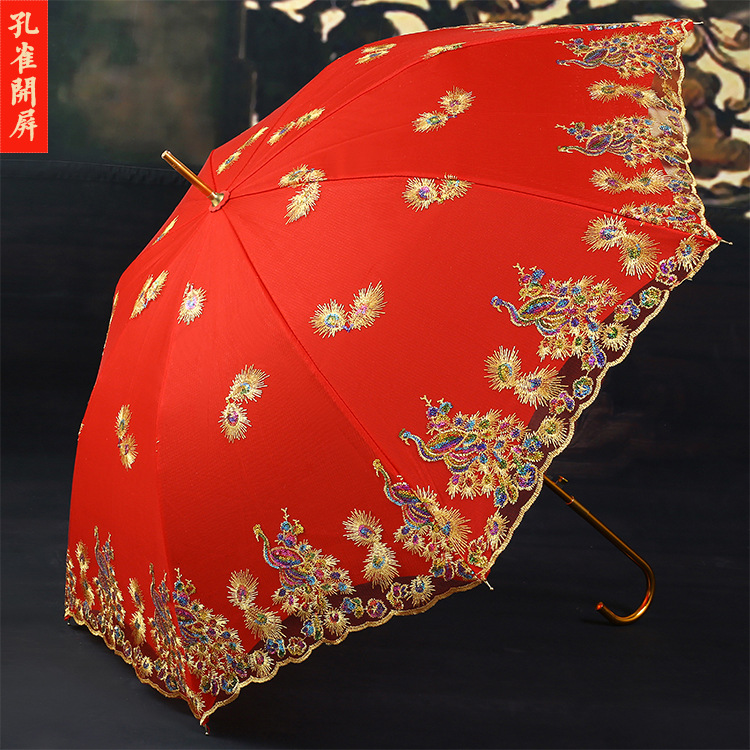 빨간 우산 신부 우산 수 놓은 천 백 새 Chaofeng 반자동 긴 손잡이 양산 신부 동반 용품 도매스토어 가기