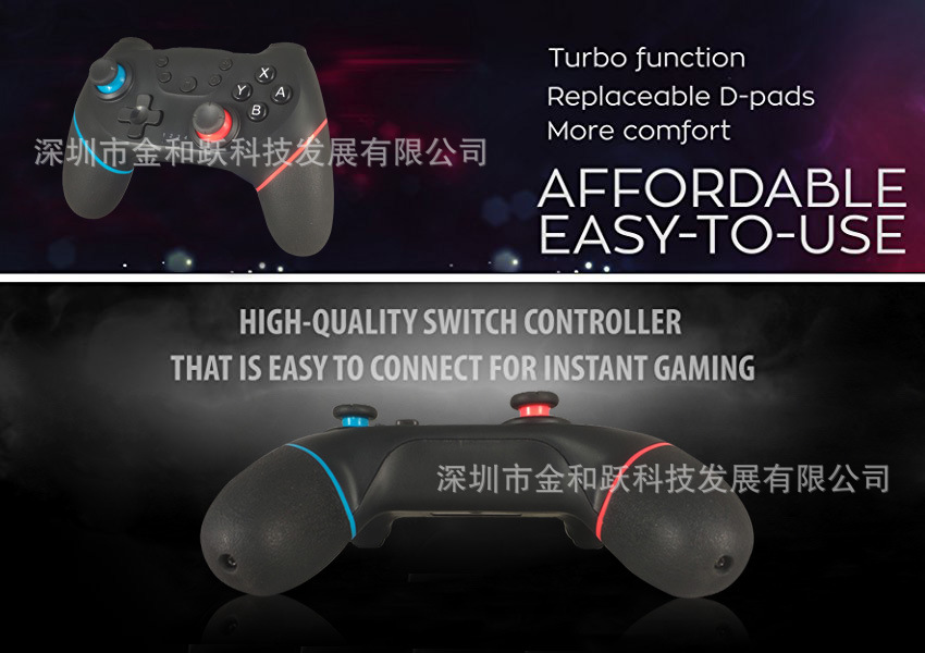 【简介】本产品属于Switch Pro无线(蓝牙)控制手柄,带TURBO功能,支持马达双震动,与Switch主机连接使用,此外还兼容PC主机(XP系统以上版本),可应用于ARMS强力拳击、马里奥赛车8 、塞尔达传说,等各类游戏的控制,使您在游戏过程中体验到身临其境的感觉。
