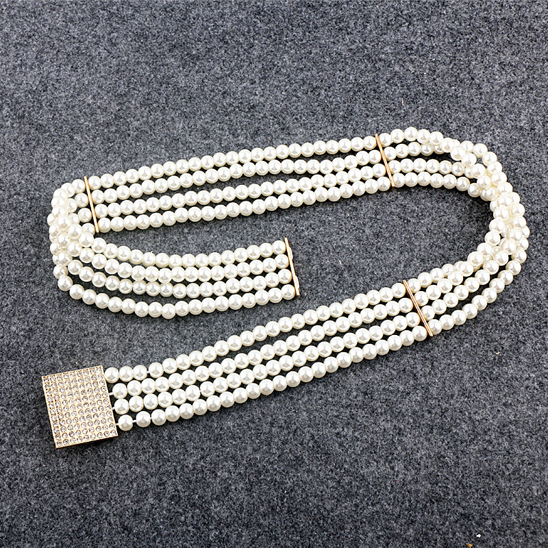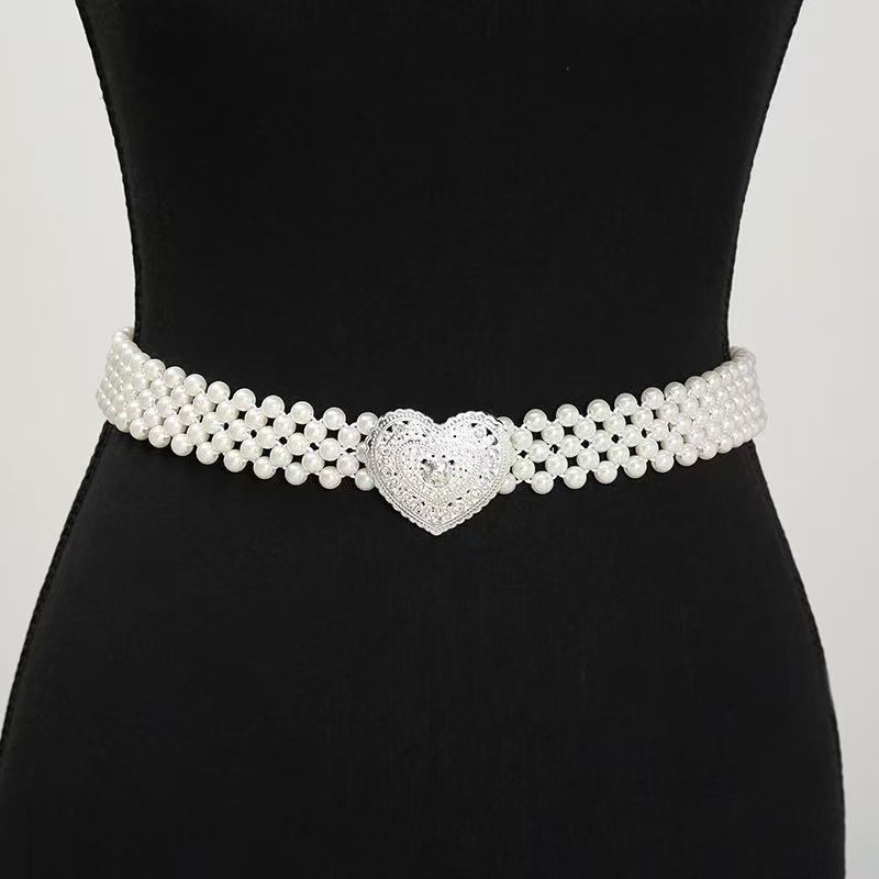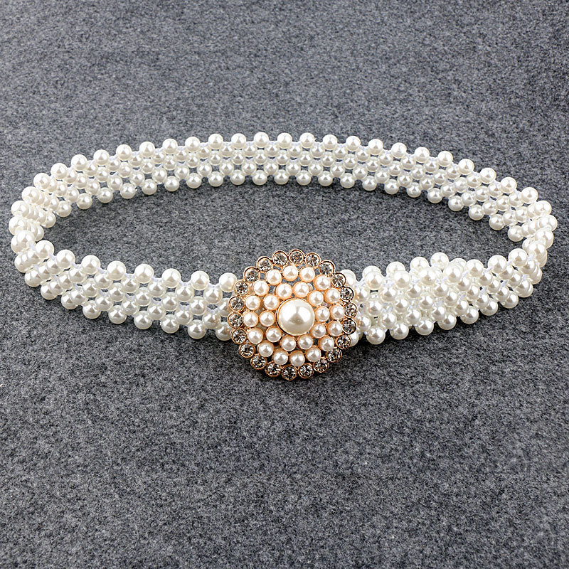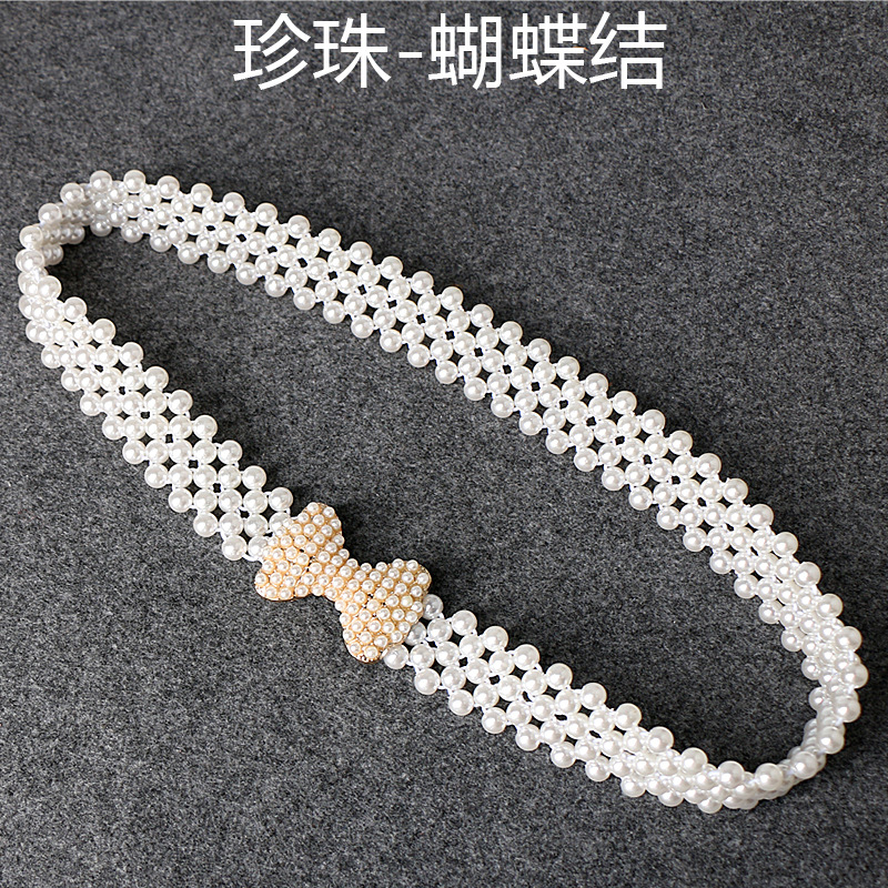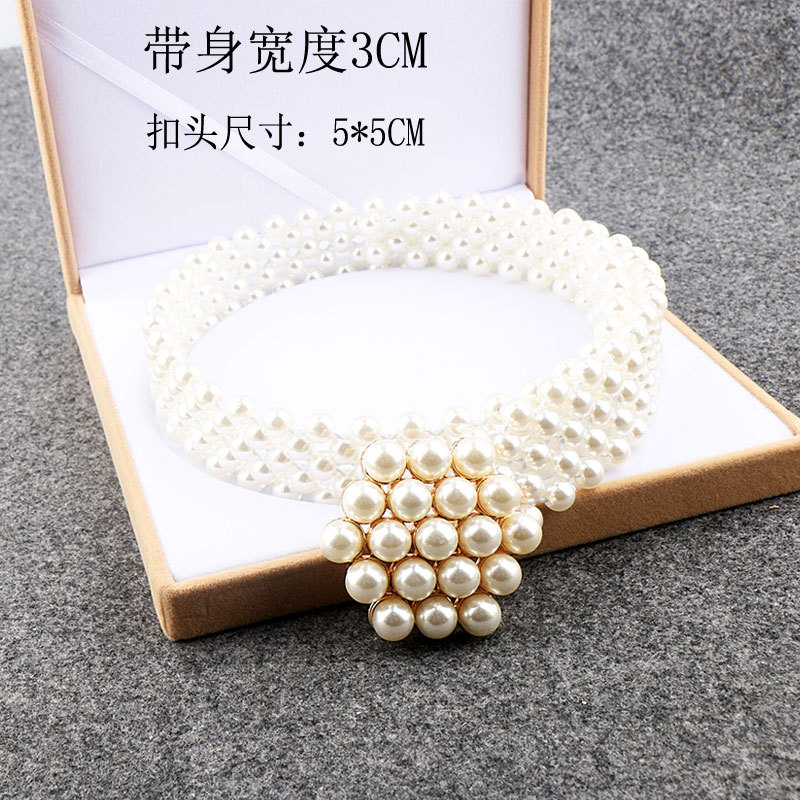 탄성 탄성 진주 벨트 여자의 넓은 장식 원피스 한국식 모든 일치 튜닉 스웨터 허리 체인 캐주얼 원피스 벨트 유행스토어 가기