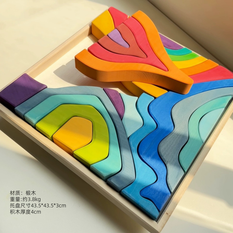 무지개 빌딩 블록 대형 나무 쌓기 음악 나무 아기 조기 교육 어린이 교육 완구 도매 머리카락 세대스토어 가기