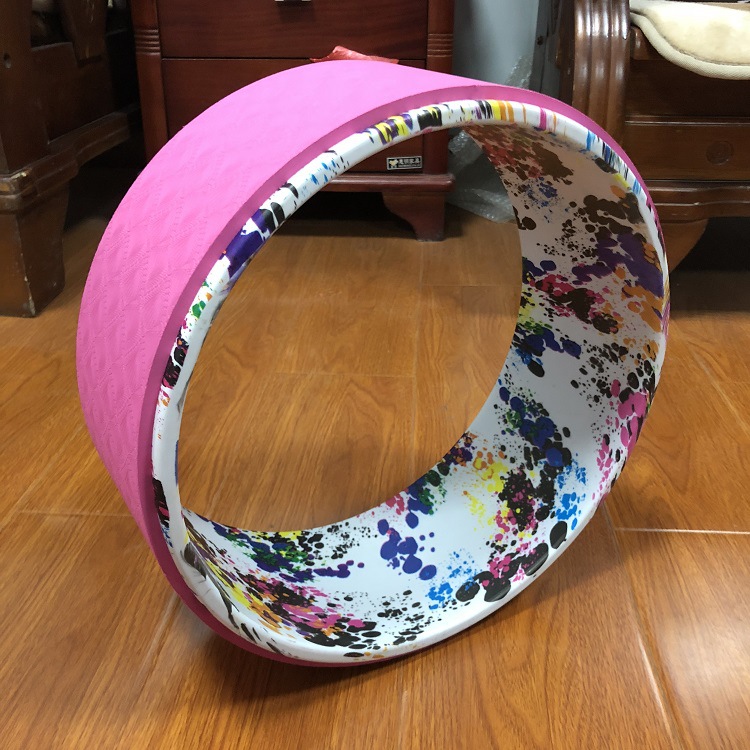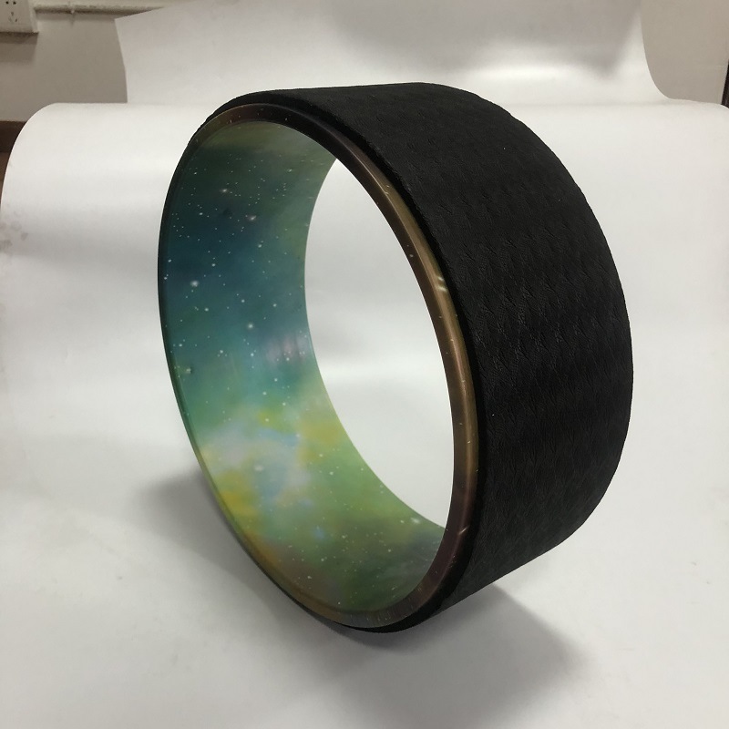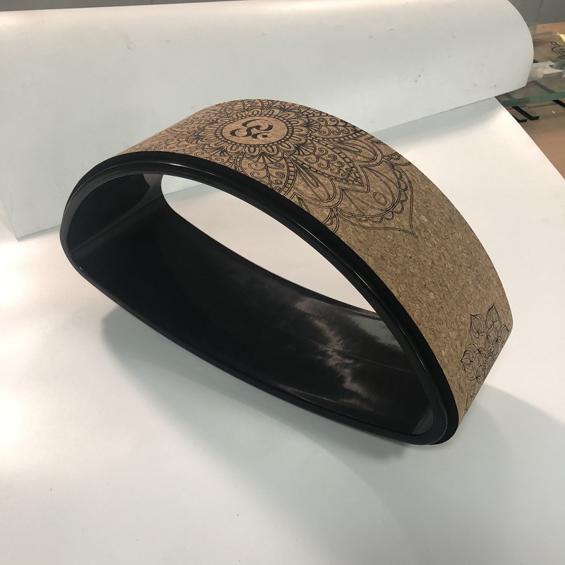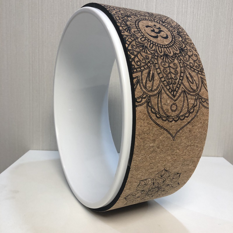 공장 판매 코르크 요가 휠 품질 우드 그레인 인쇄 벤드 장비 임산부 보조 달마 휠 필라테 링스토어 가기