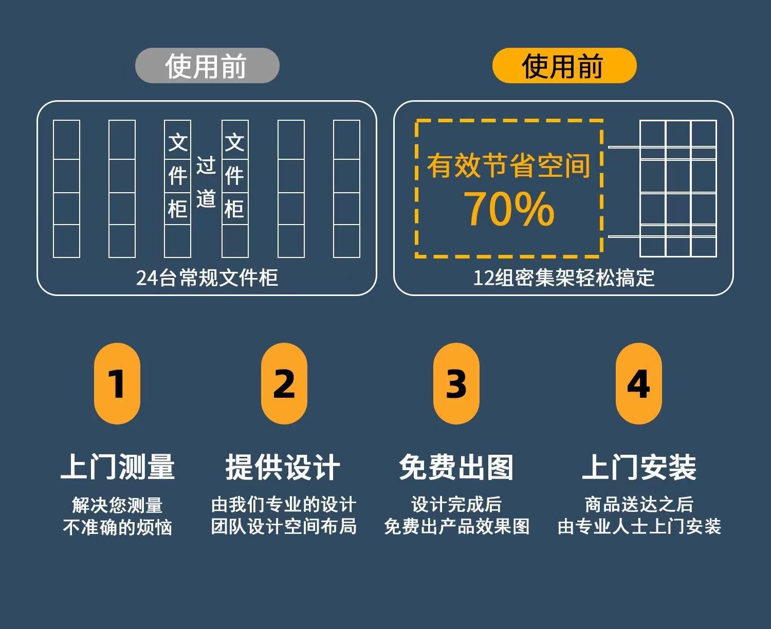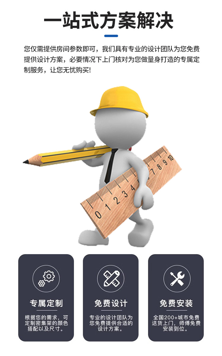 雅乐轩拥有专业团队,分设研发技术、市场营销、规划设计、生产制造安装交付、售后维保等6大职能中心为一体的智能档案室密集架国内龙头企业。用心做好每一次,改变世储物空间是我们多年的追求。本公司所有产品具有负载强、拆装简单、外表美观、操作便捷、工期短特点,全球经济高速发展的今天,智能密集架已经真正介入到企业的供应链管理并已成为必不可少的部分之一,雅乐轩密集架广泛应用于现代工业中的学校,医院,政企单位,仓库物流中心,配送中心,电商物流等仓储需求较大的各类行业。
