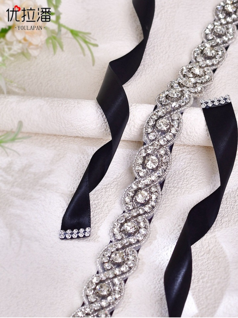 유라판 S28 유럽풍 비즈 실버 드레스 벨트 수제 라인스톤 신부 벨트 우아한 웨딩 액세서리
