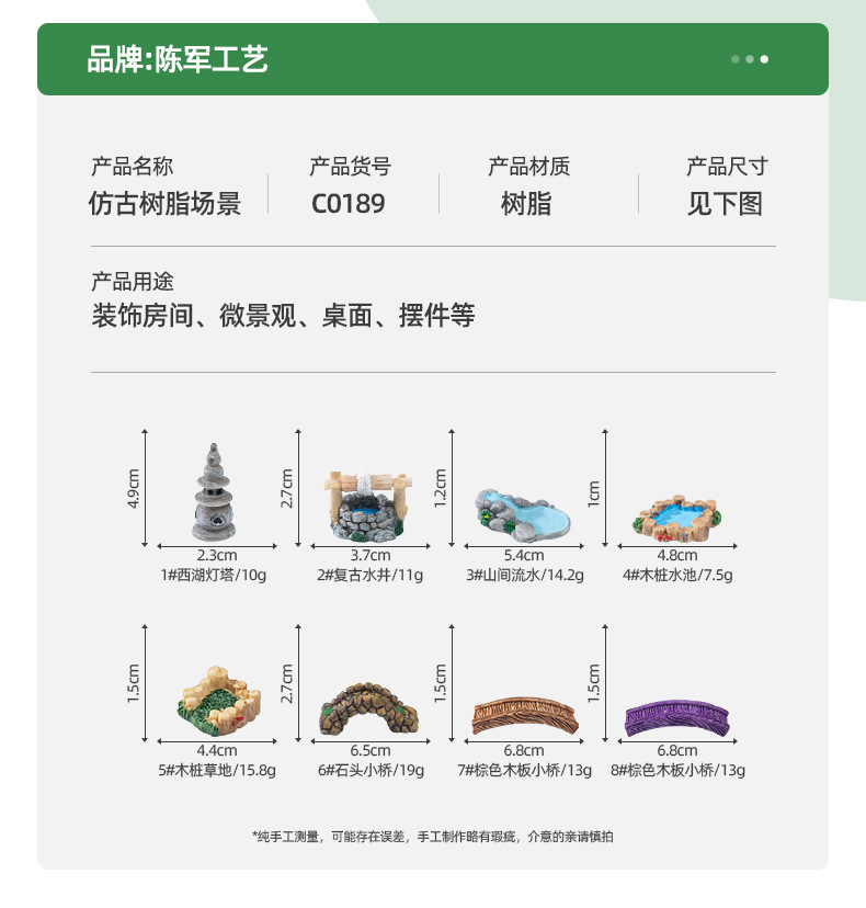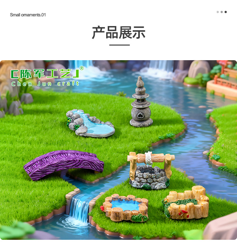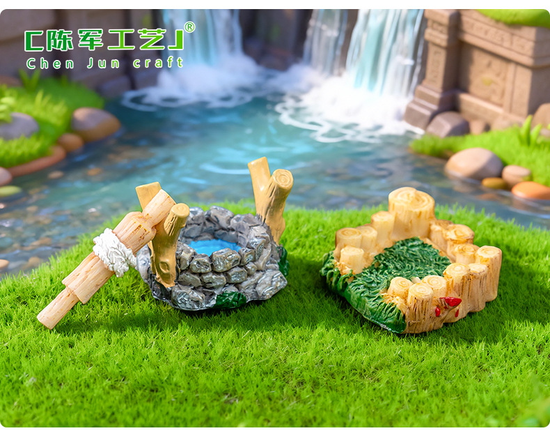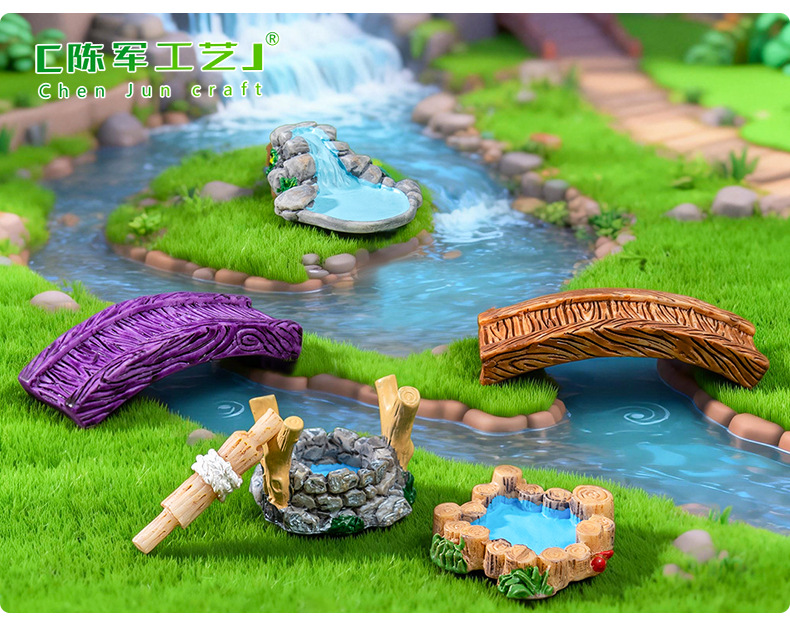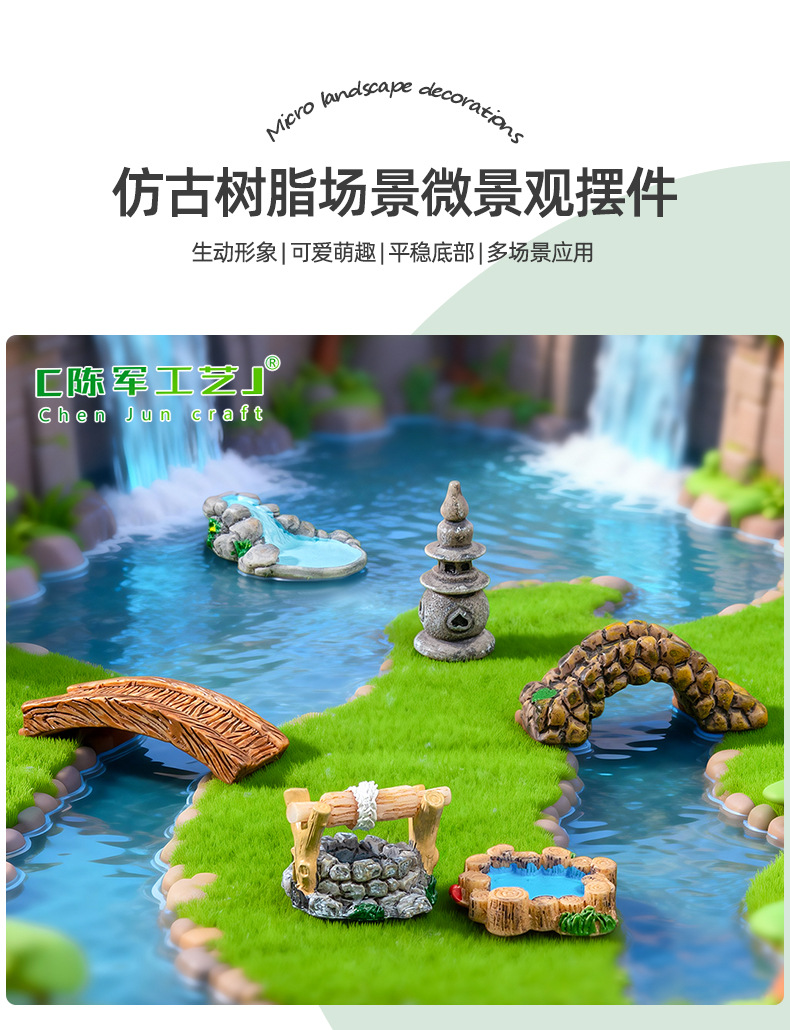 마이크로 풍경 복고풍 골동품 수지 장면 장식품 웨스트 레이크 등대 물 우물 수영장 작은 다리 실행 물 잔디
