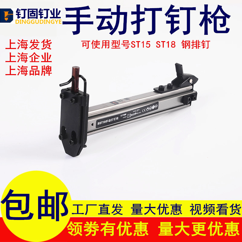 亲们好. 此价格是含运费含普票的价格,具体运费以及税点请联系客服咨询价格, 另外产品为手动打钉枪 只能用榔头敲打 15 18 钢排钉两个规格,其他型号不适用(请慎拍)。