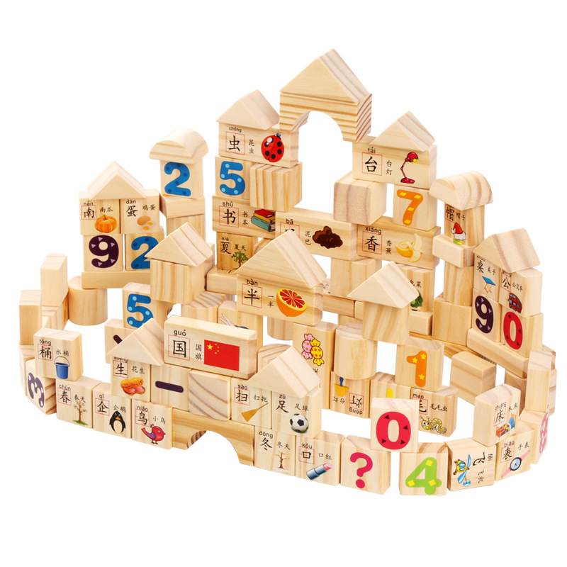 목조 조기 교육 교육 빌딩 블록 디지털 중국어 문자 100 스택 빌딩 블록 3-6 세 어린이인지 장난감스토어 가기