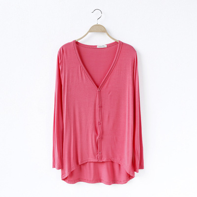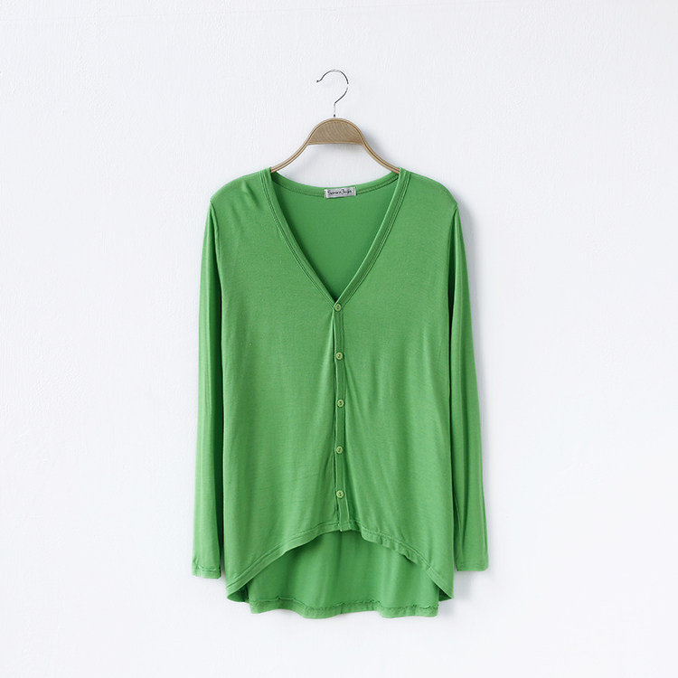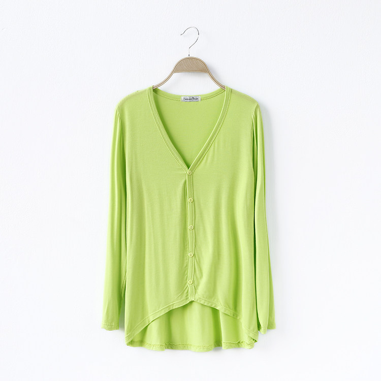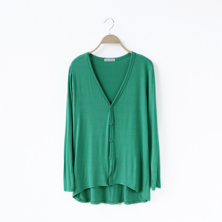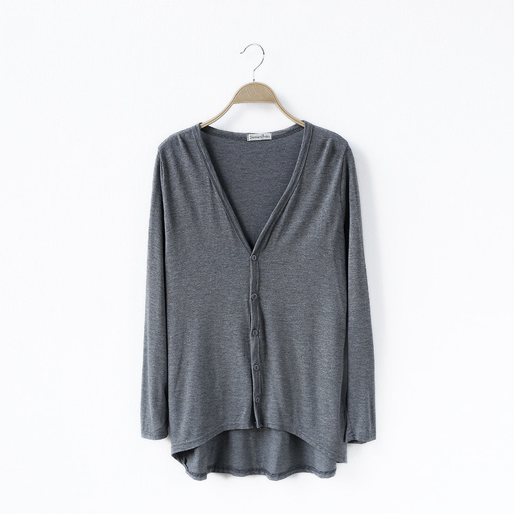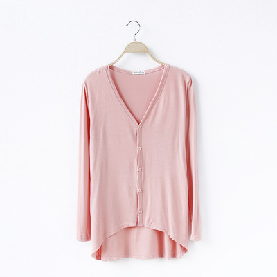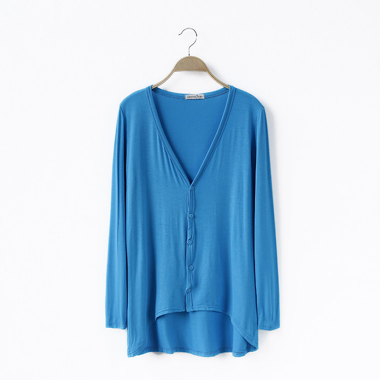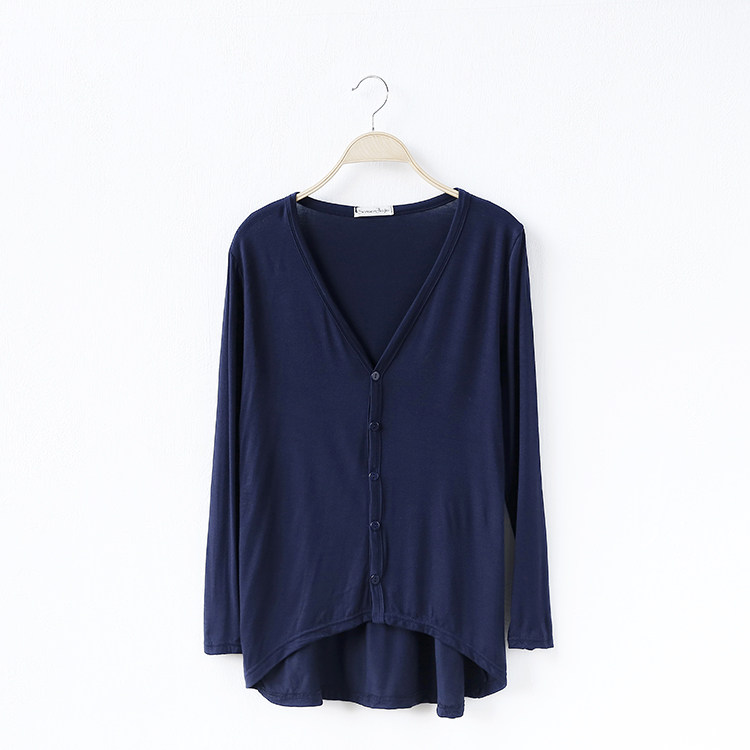 19 여성 의류 봄과 가을 모달 면 플러스 사이즈 니트 스웨터 재킷 짧은 앞면과 긴 긴 소매 불규칙한 카디건스토어 가기