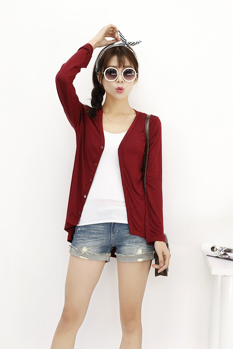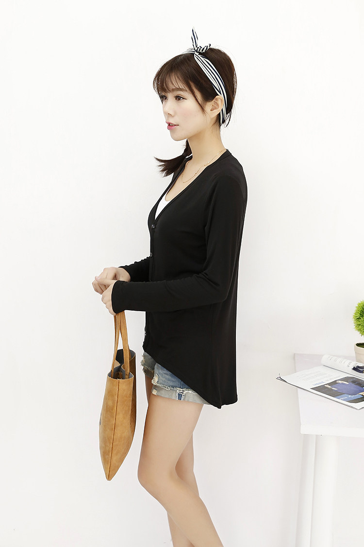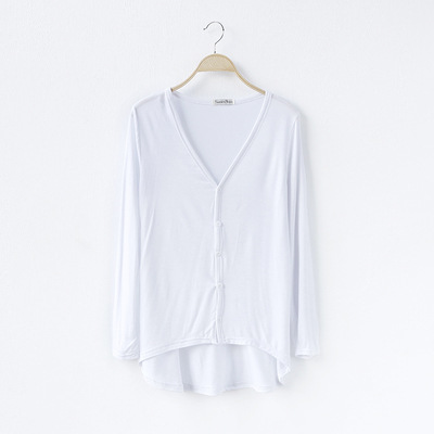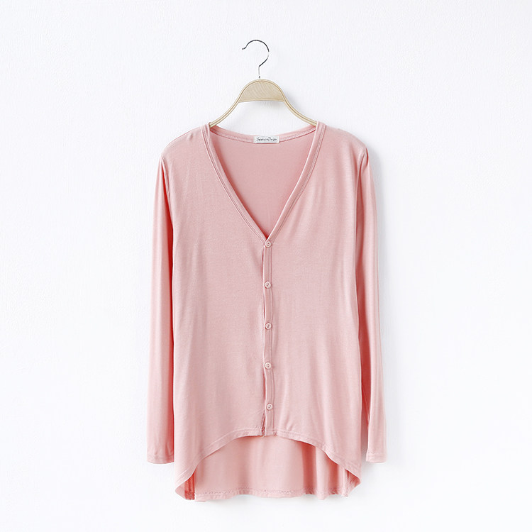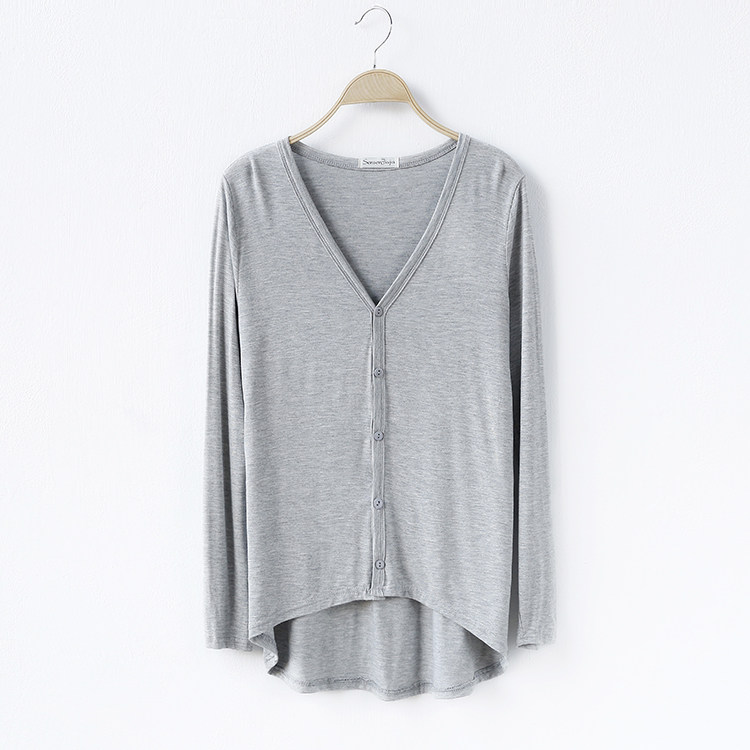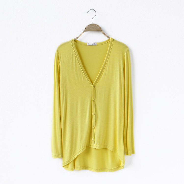 19 여성 의류 봄과 가을 모달 면 플러스 사이즈 니트 스웨터 재킷 짧은 앞면과 긴 긴 소매 불규칙한 카디건스토어 가기