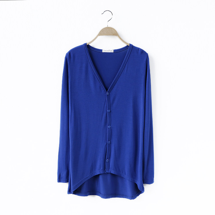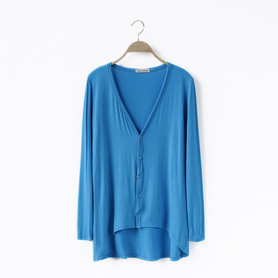 19 여성 의류 봄과 가을 모달 면 플러스 사이즈 니트 스웨터 재킷 짧은 앞면과 긴 긴 소매 불규칙한 카디건