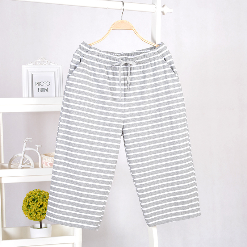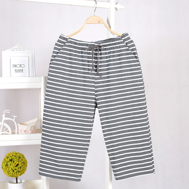 봄 여름 남성용 순면 큰 주머니 7부 바지 루즈핏 잠옷 바지 남성용 중간 길이 바지 에어컨 바지 홈웨어 바지 심플 캐주얼스토어 가기