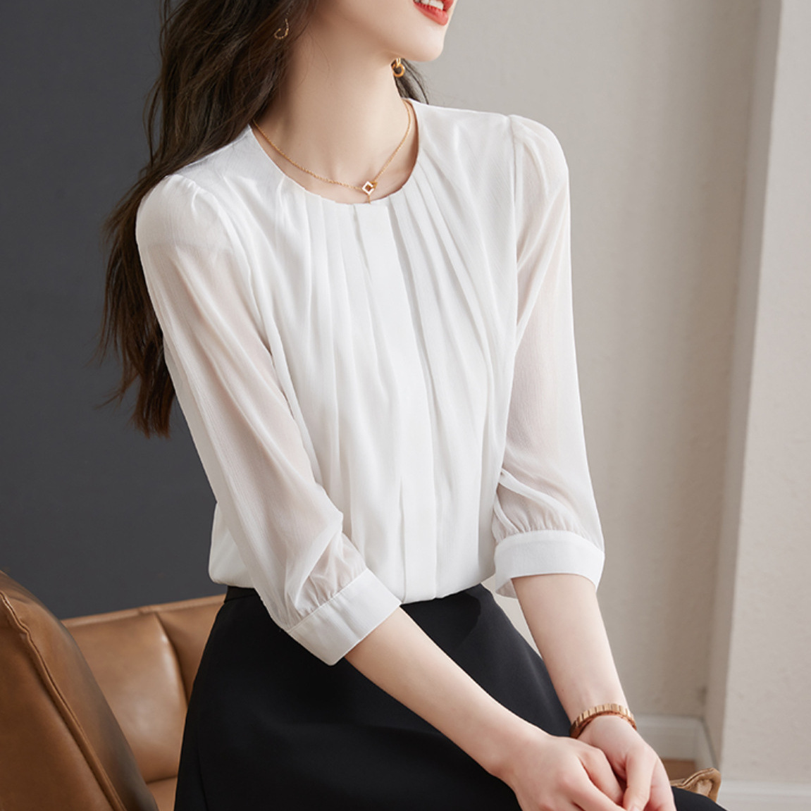실제 사진: 2025년 봄 신상품 7부 소매 쉬폰 셔츠 여성용 다용도 셔츠 가디건 스타일리쉬 탑이 이미 배송되었습니다.스토어 가기