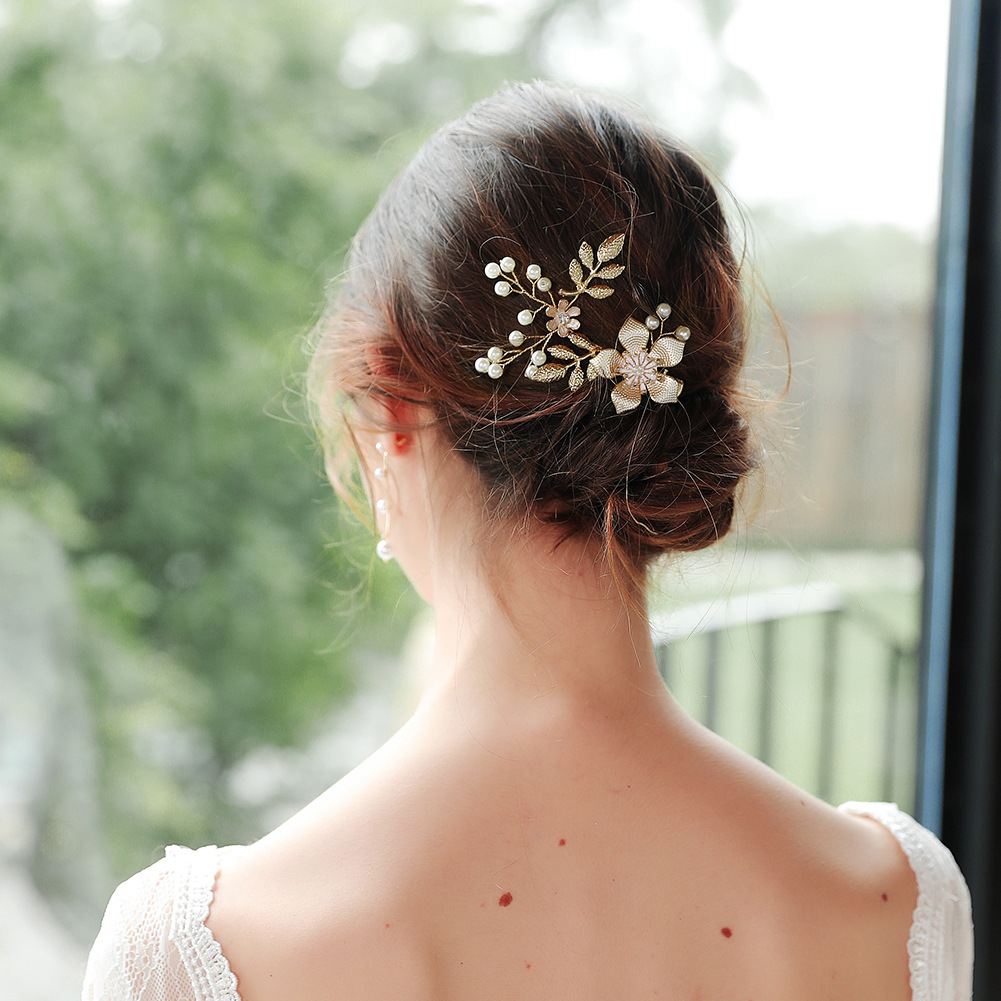국경 간 유럽과 미국의 보석 수제 꽃 머리핀 오일 떨어지는 합금 진주 신부 사이드 클립 웨딩 원피스 머리 장식 액세서리스토어 가기