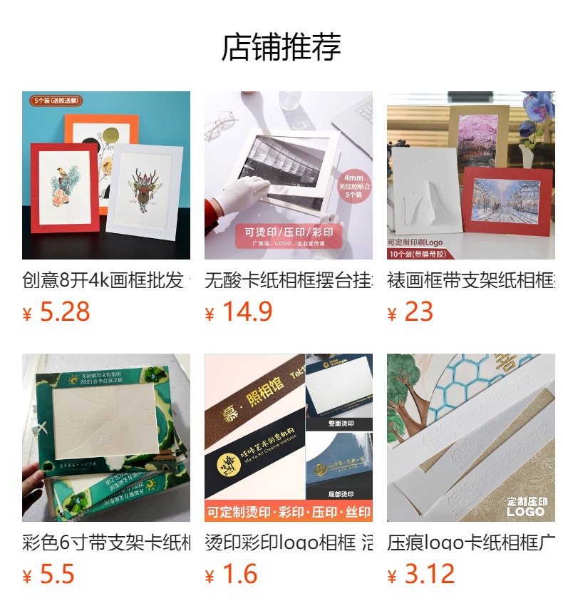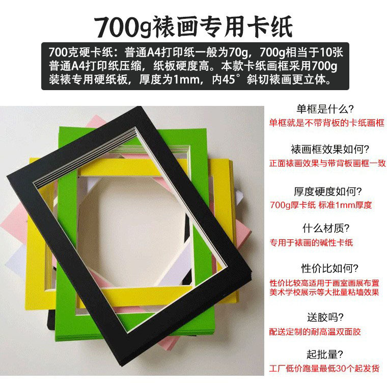 本厂热销卡纸画框,本款产品卡纸画框,采用装裱专用700g装裱厚硬卡纸板,下单送膜送胶,不要膜胶联系客服优惠。