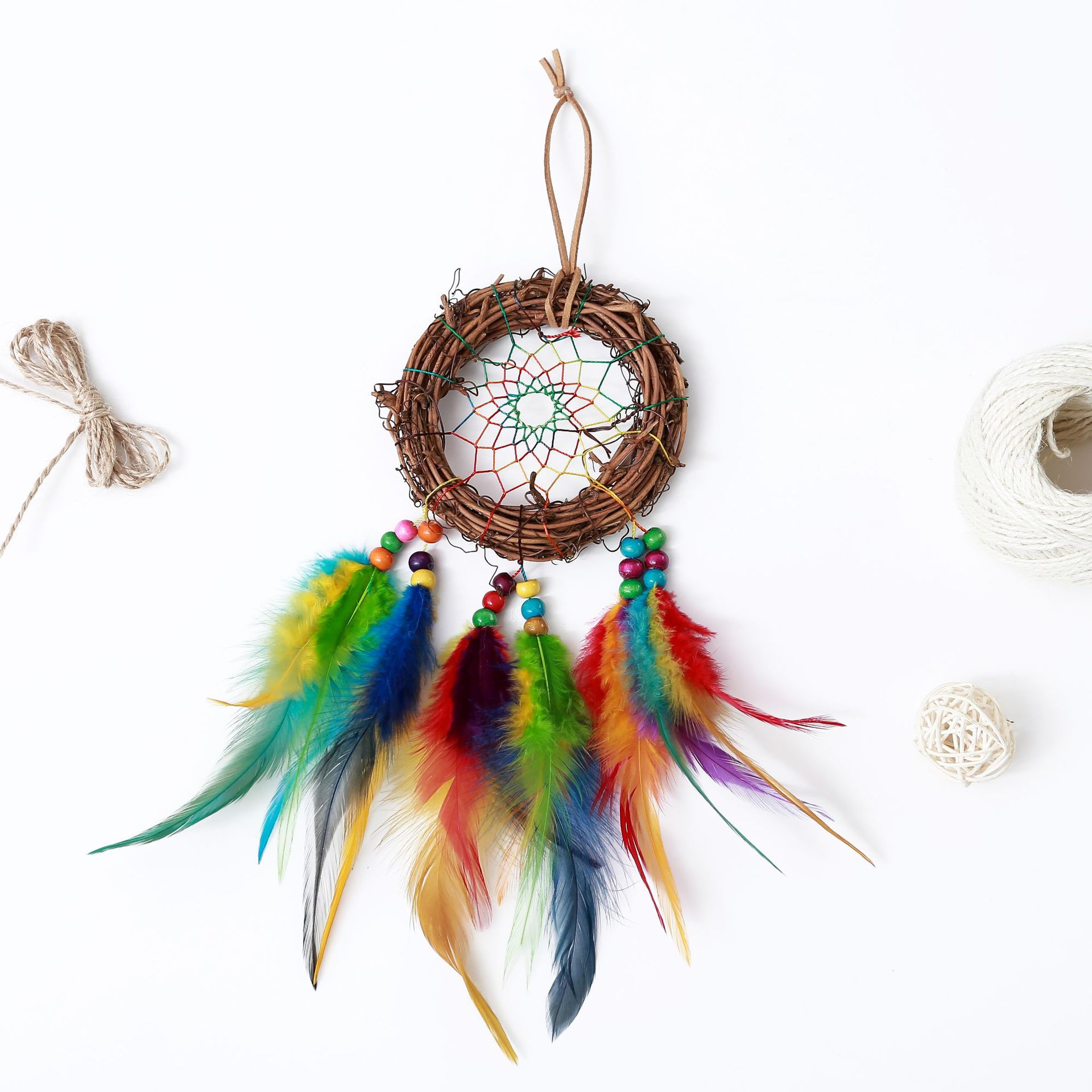 【材 质】:树木 ,熏蒸羽毛,彩色线,木珠,