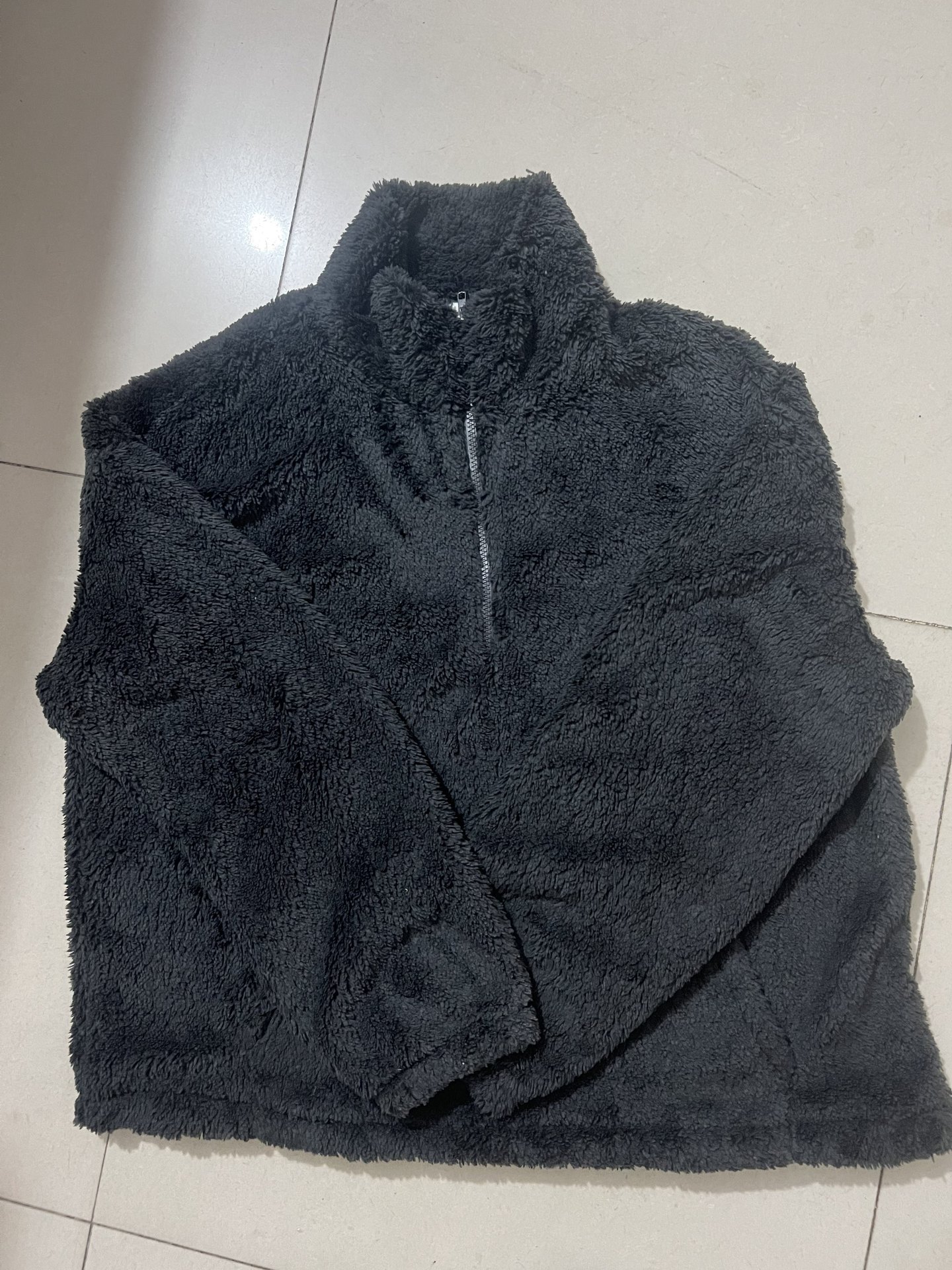 크로스보더 알리익스프레스 위시2025 가을 겨울 유럽 및 미국 신상품 플러시 안감 여성용 하프 지퍼 스탠드 칼라 스웨트셔츠스토어 가기