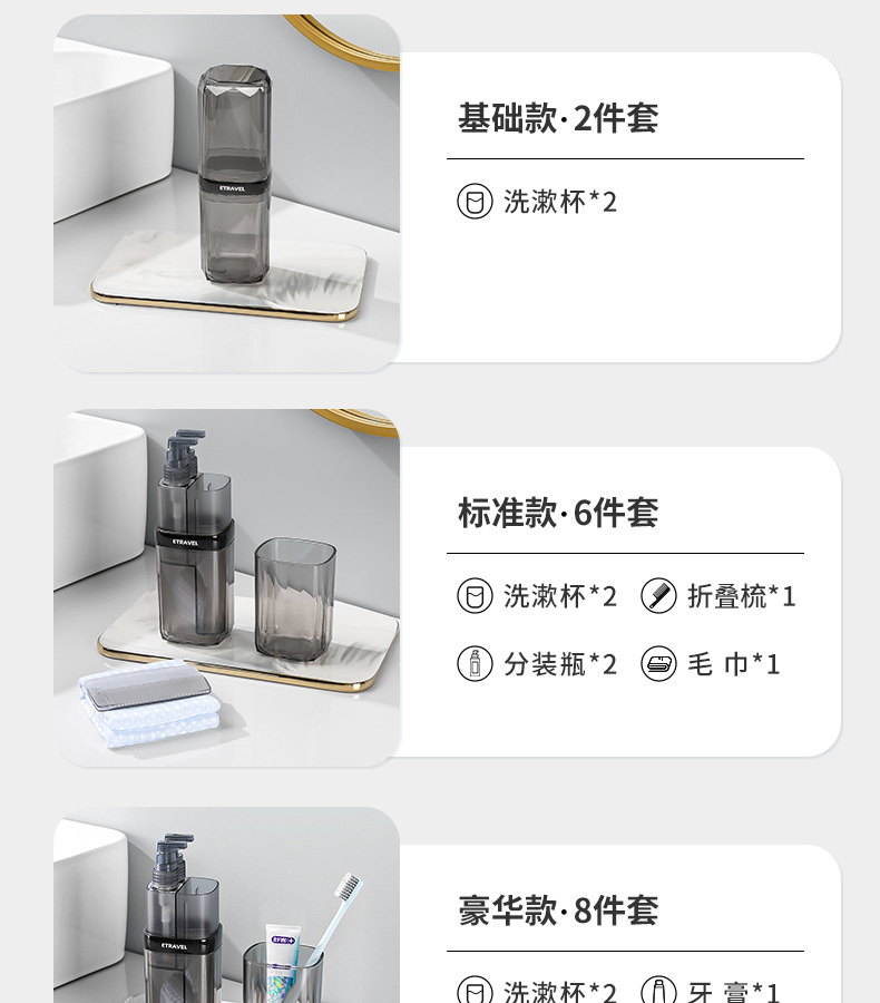 A23:(材质:ABS/PC 简易款:重量185g 装箱数:60 6件套:重量:324g 装箱数:30 8件套:重量388g 装箱数:30)