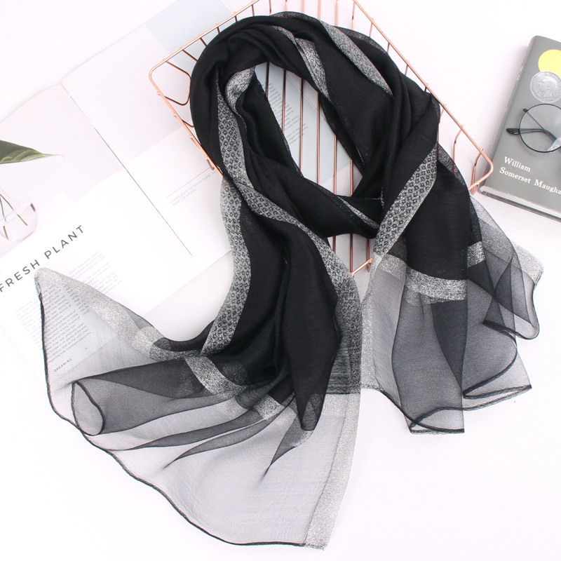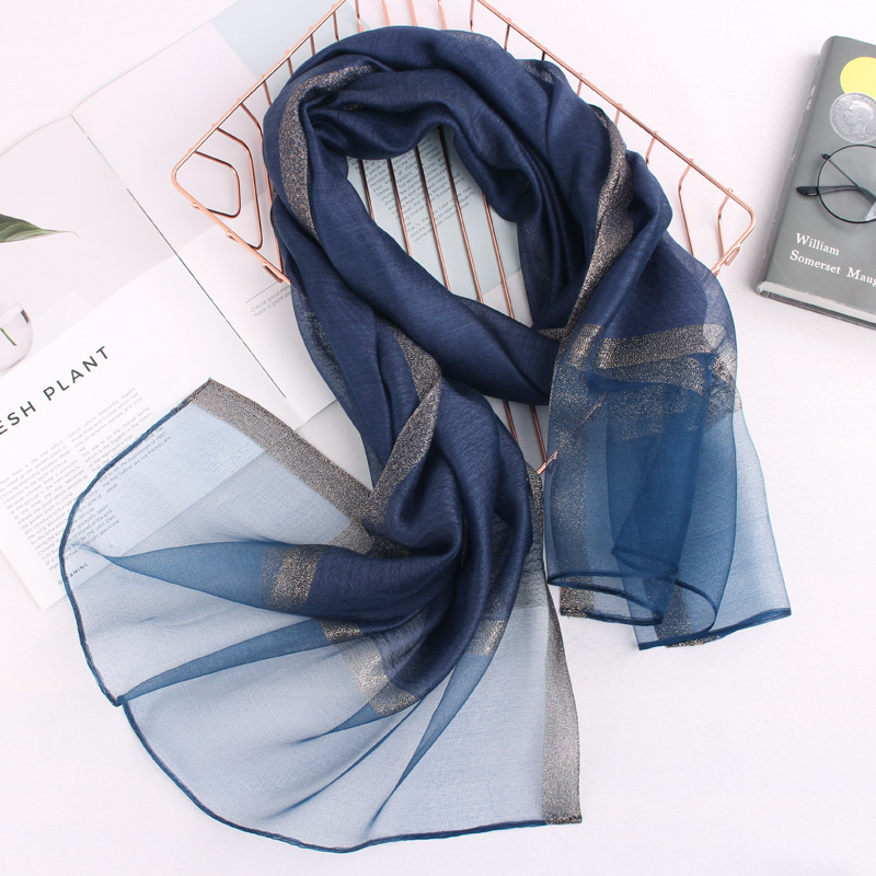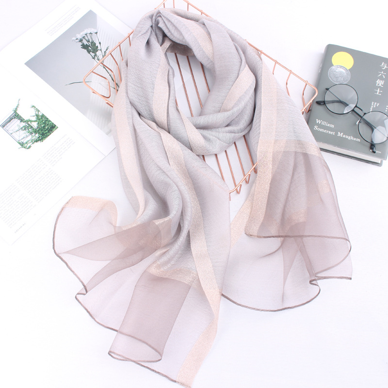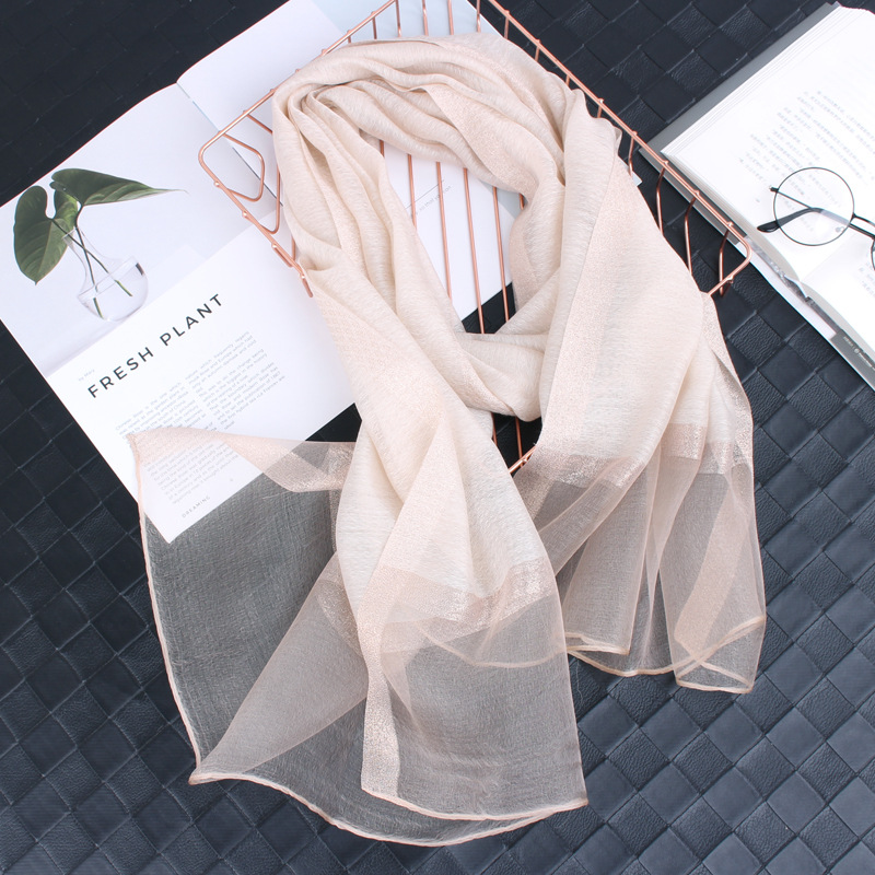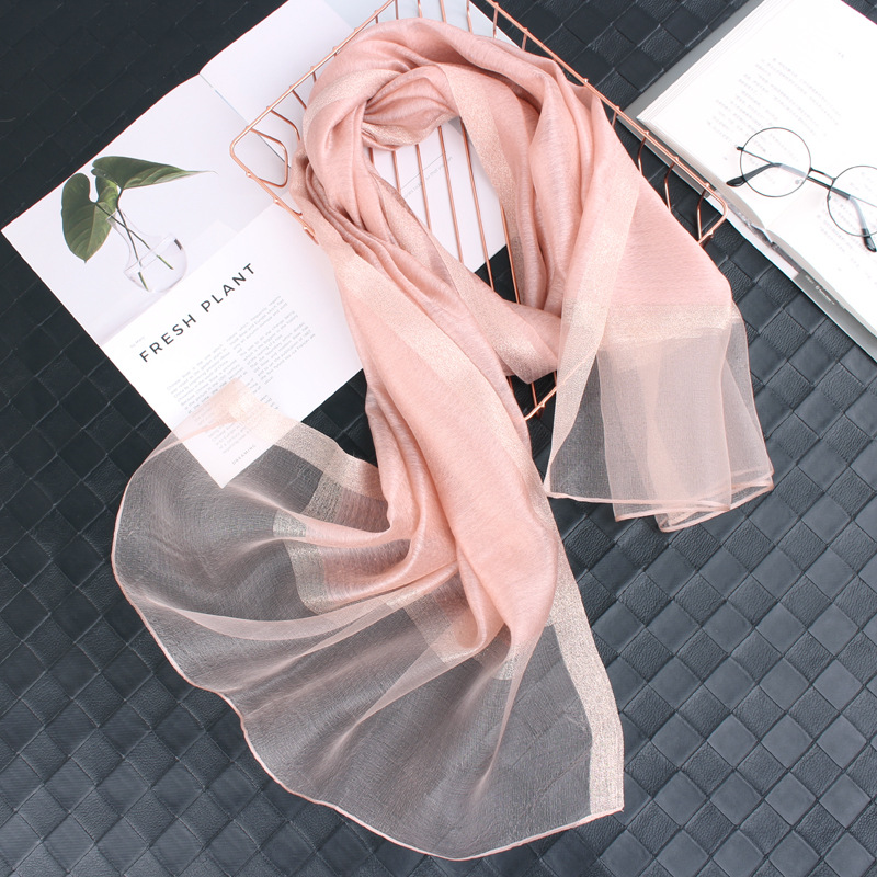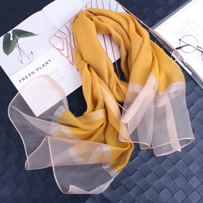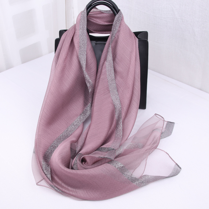 봄 새로운 실크 코튼 솔리드 컬러 모든 매치 롱 골드와 실버 실크 스카프 겨울 따뜻한 물 리플 빈티지 목도리스토어 가기