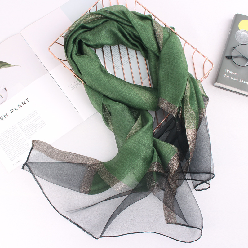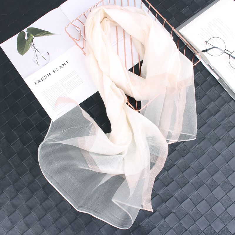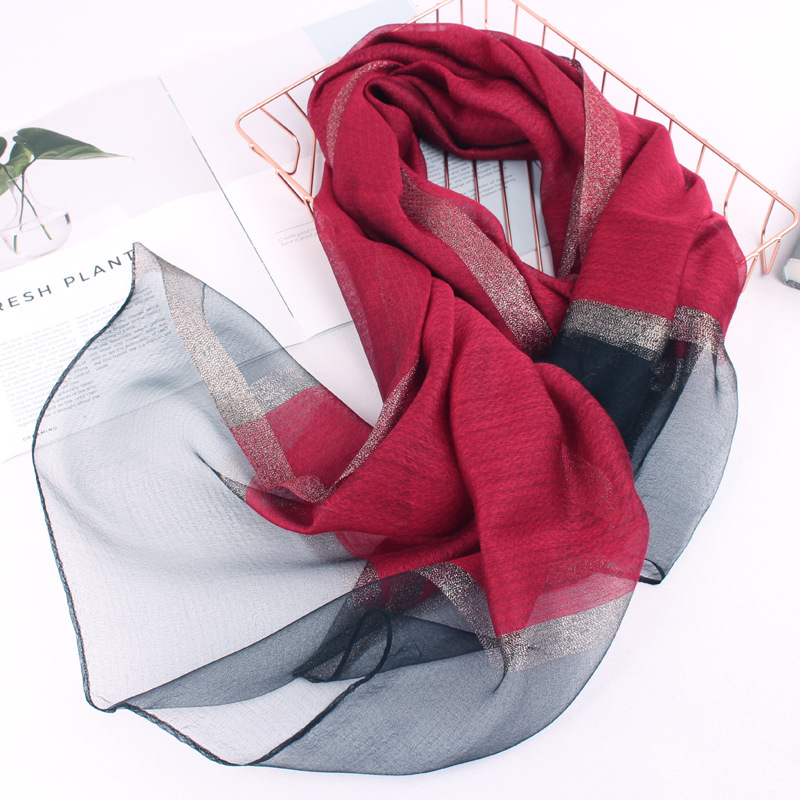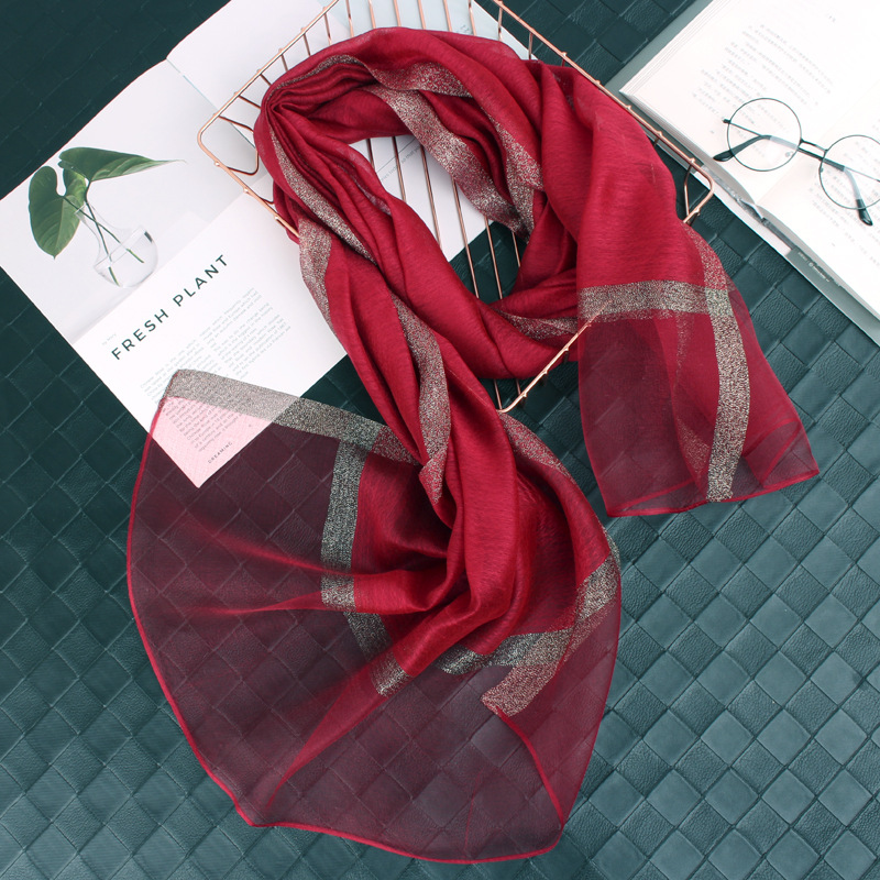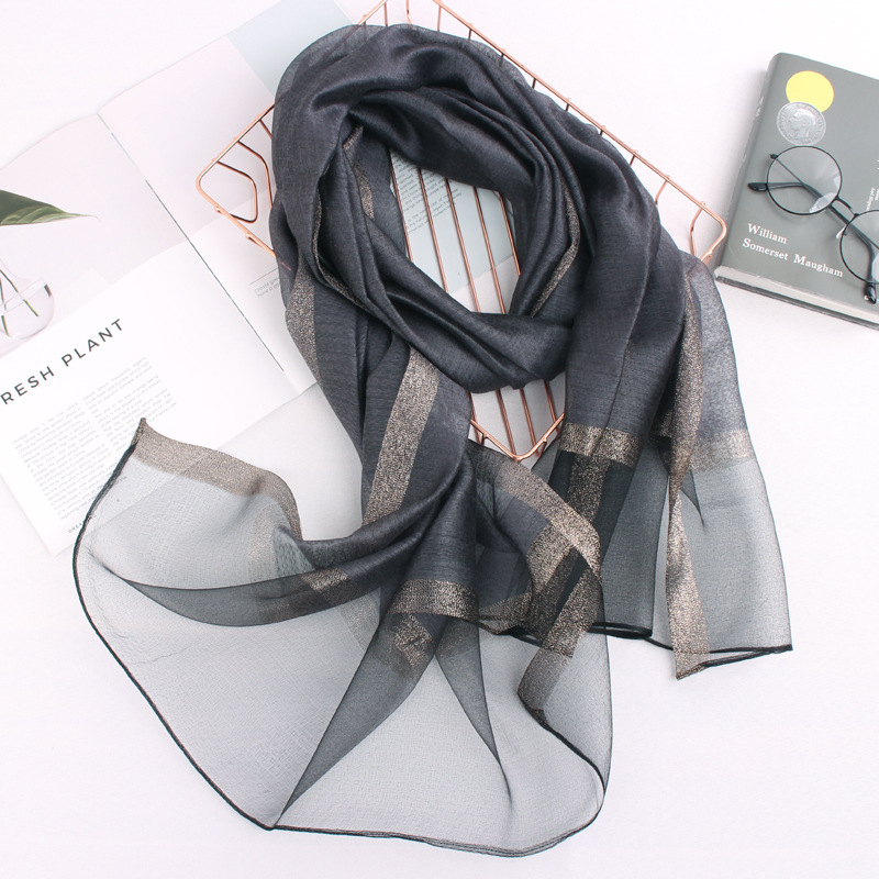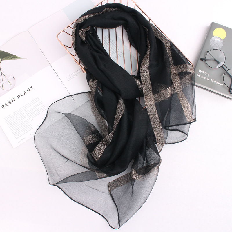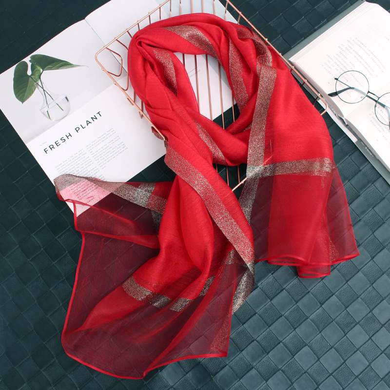 봄 새로운 실크 코튼 솔리드 컬러 모든 매치 롱 골드와 실버 실크 스카프 겨울 따뜻한 물 리플 빈티지 목도리스토어 가기