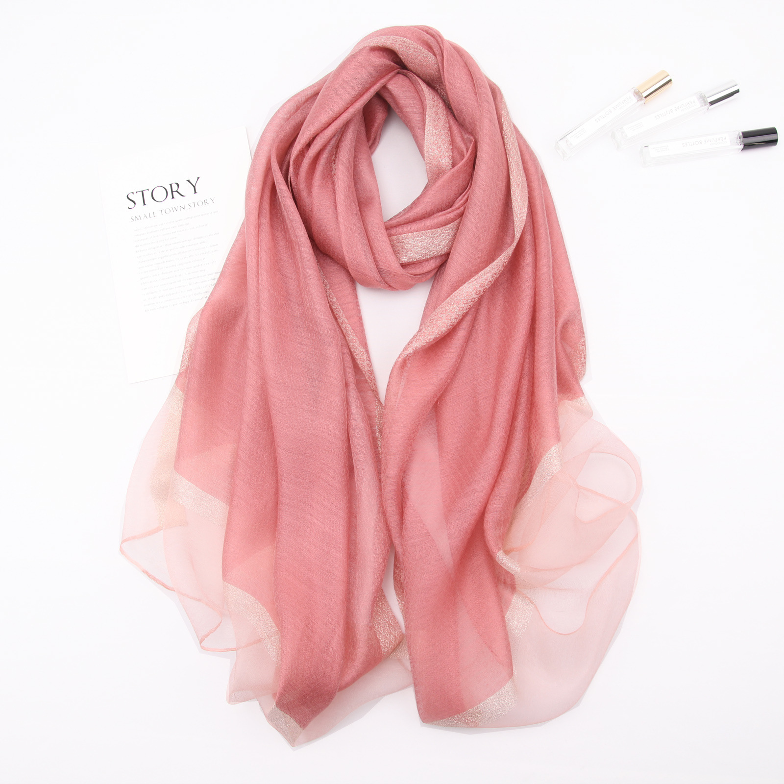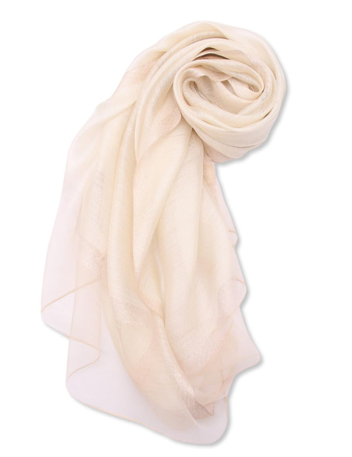 四周的金银丝装饰让整条围巾鲜活优雅