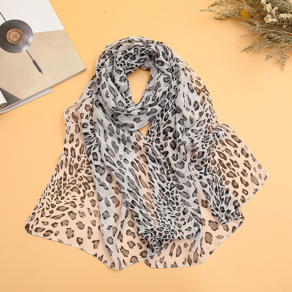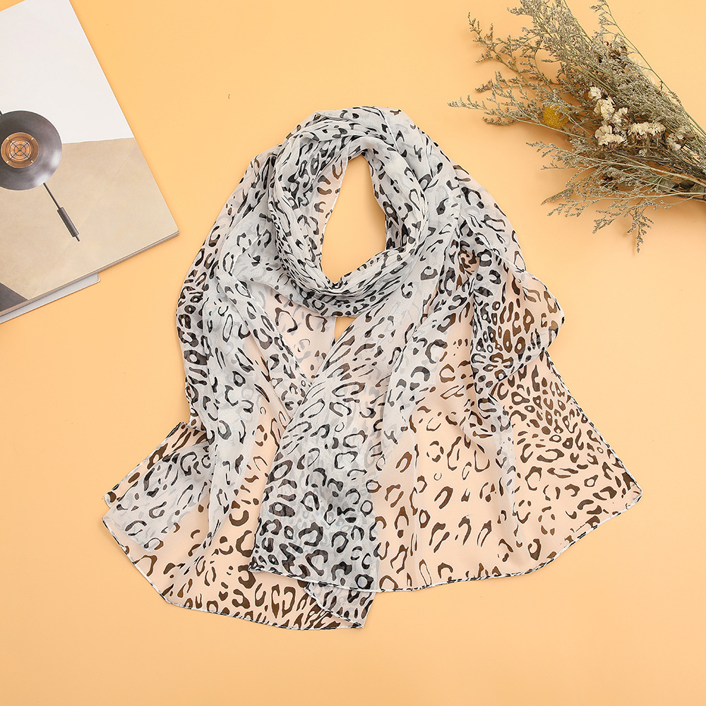 모래 스카프 여름 작은 스카프 이중 사용 한국 스타일 모든 일치 작은 스카프 클래식 표범 쉬폰 스카프 여성 얇은 숄