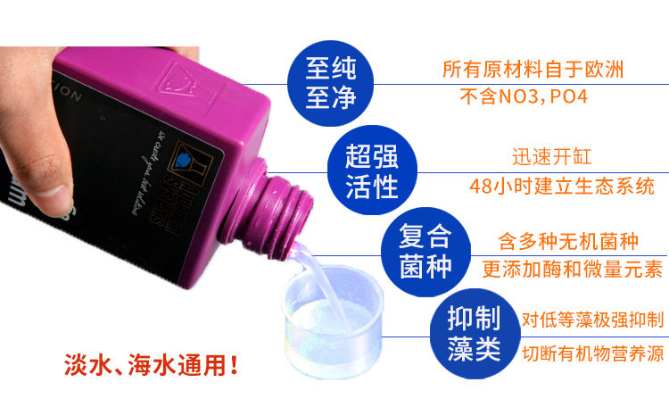 프랑스 적십자 담수 해수 활성 질화 박테리아 수족관 물 정화제 소화 박테리아 250ml스토어 가기