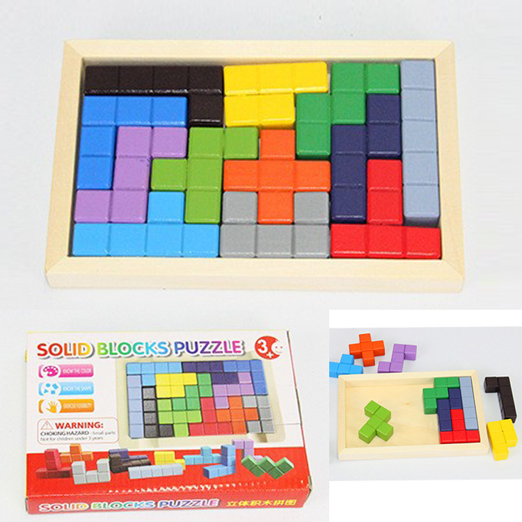 테트리스 공장 직접 나무 창조적 인 재미 입체 빌딩 블록 도매 어린이 퍼즐 장난감