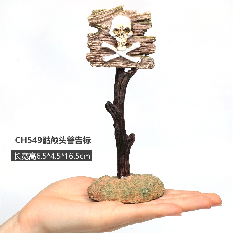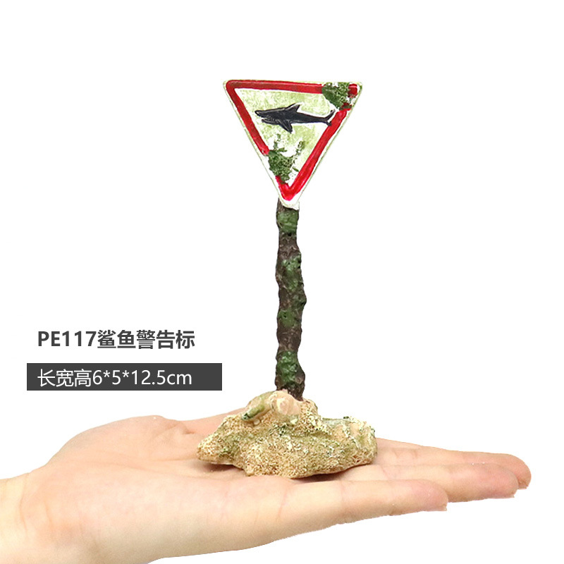 국경 간 수조 물고기 브랜드 조경 장식 수족관 만화 작은 장식품 물고기와 새우 피난처 시뮬레이션 산호 경고 표시