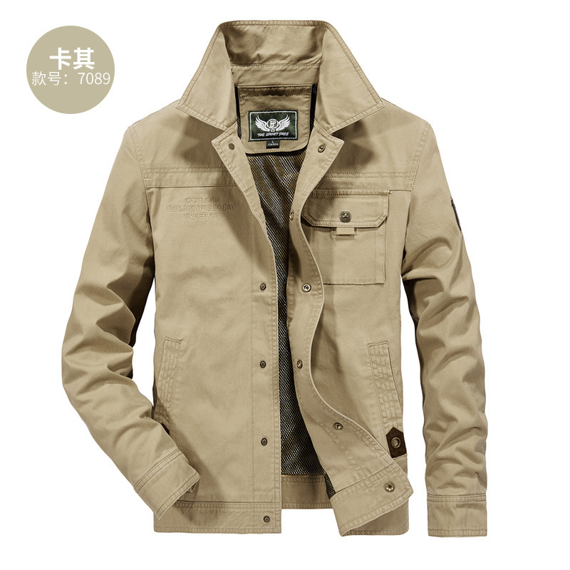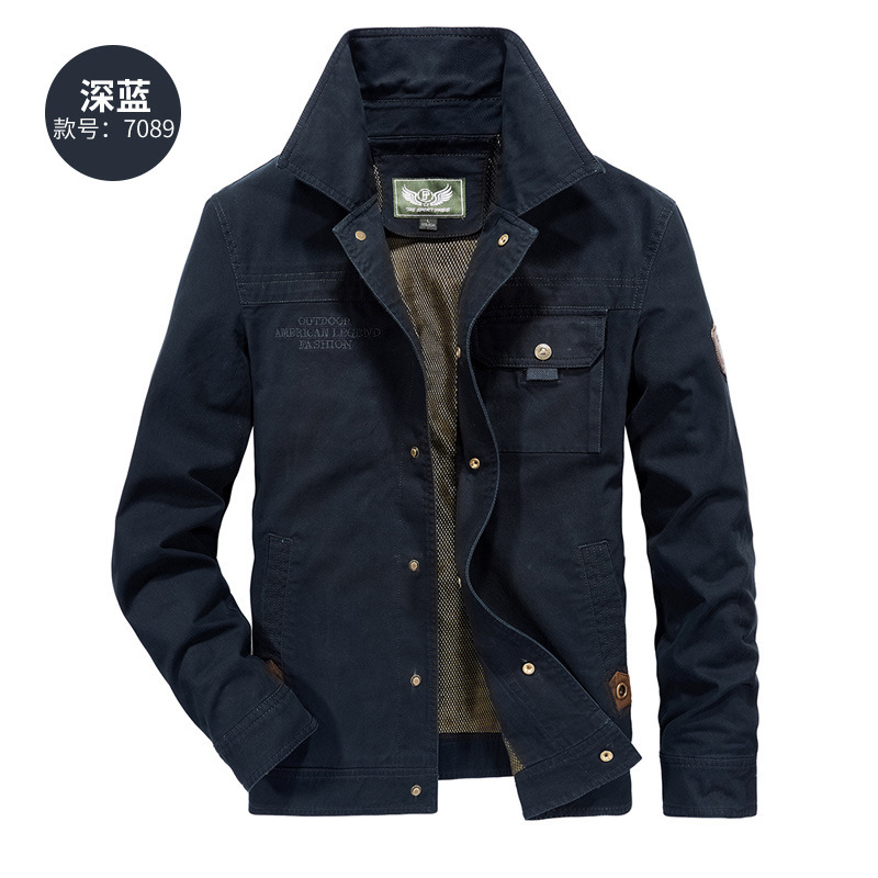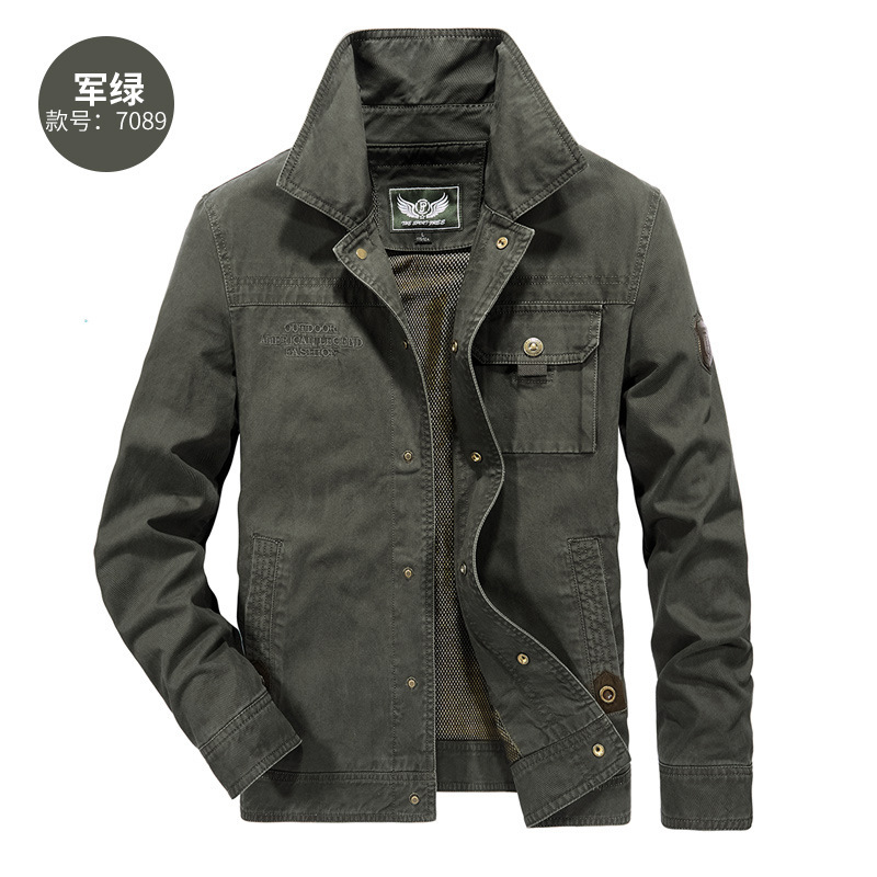 7089 # 봄과 가을 새 남성 캐주얼 워싱 순면 단색 재킷 중년 작업 재킷 남성 3166 얇은스토어 가기