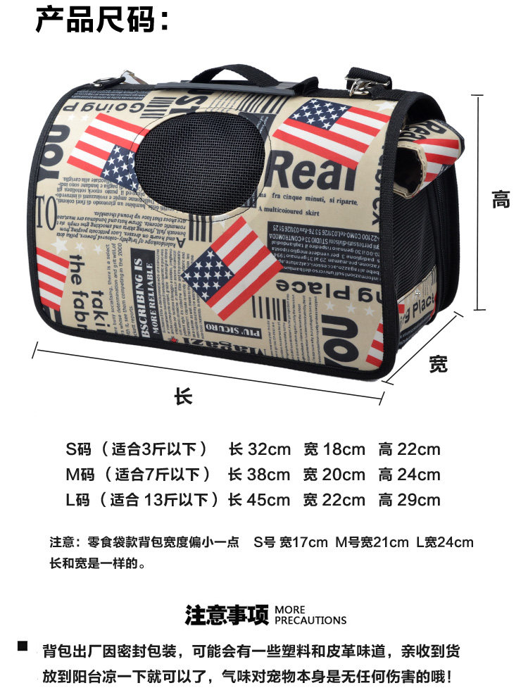 背包尺寸:(请量宠物的背长来判断)