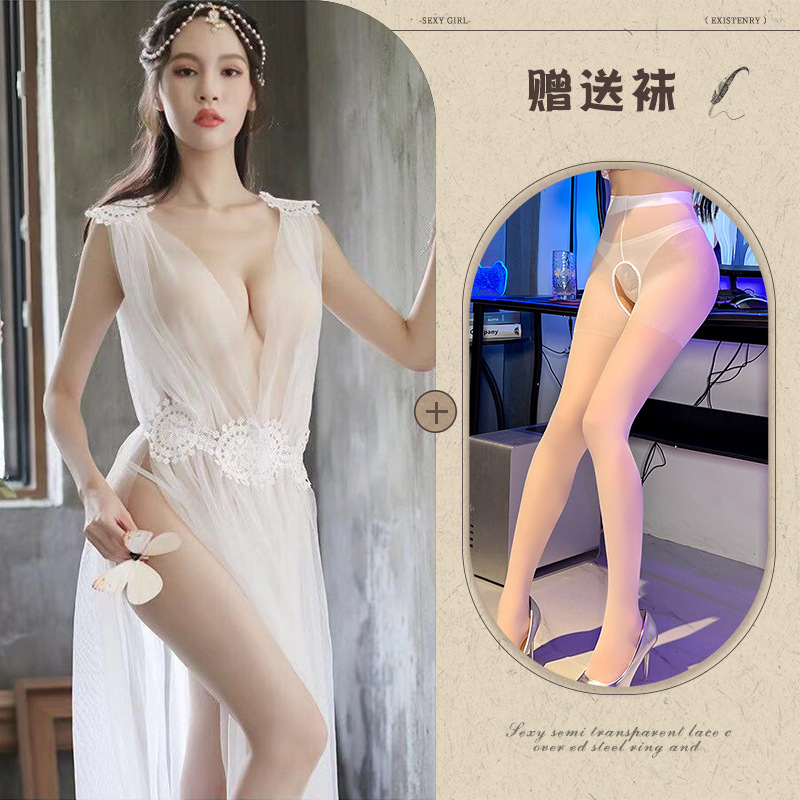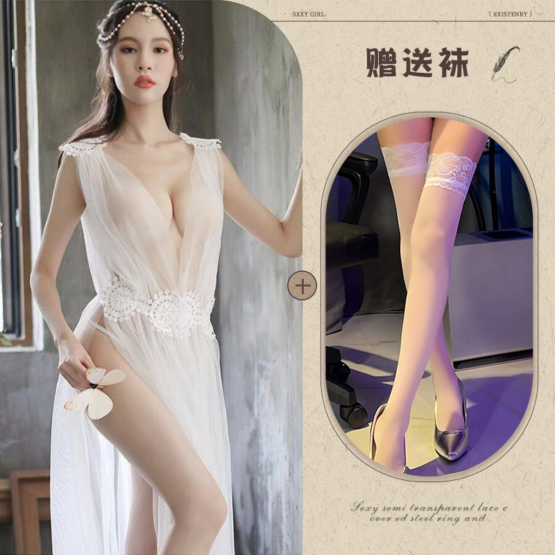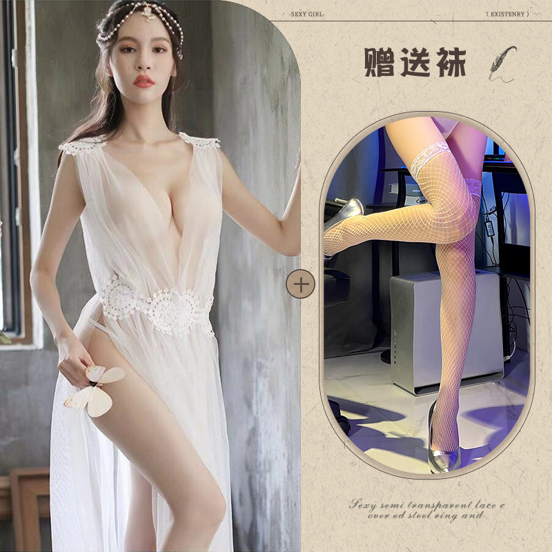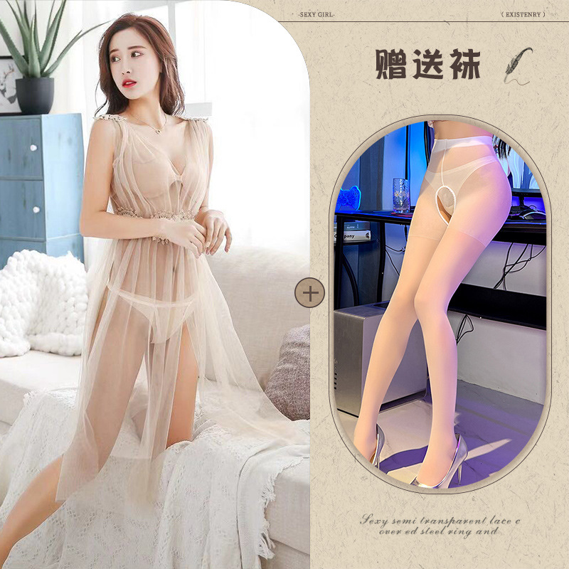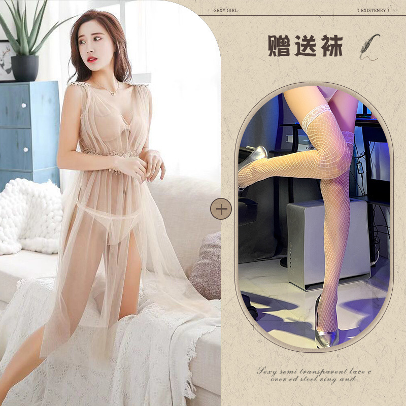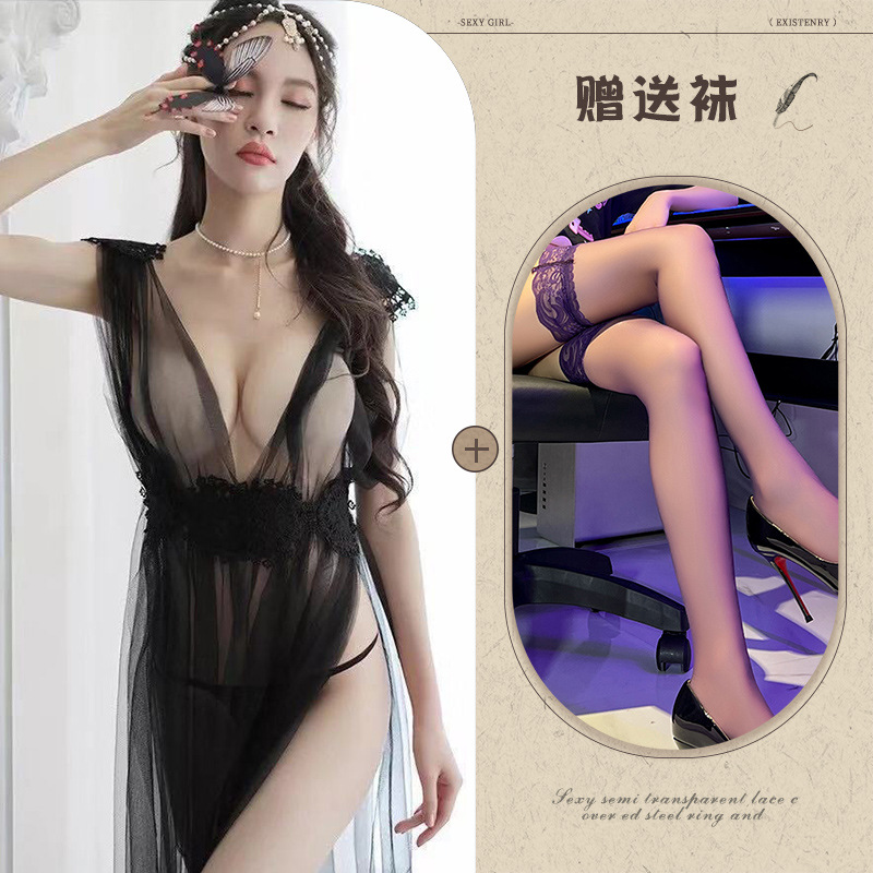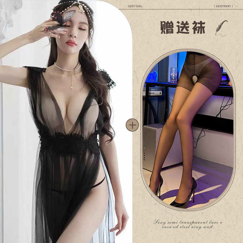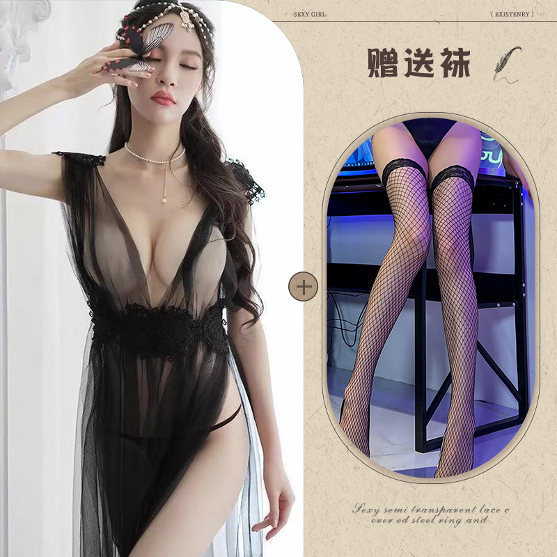 밤 Tingxiang 새로운 스타일 섹시한 속옷 섹시한 잠옷 여자의 투명 레이스 전체 투명 얇은 명주 그물 성인 뜨거운 잠옷 긴스토어 가기