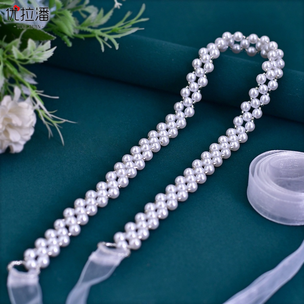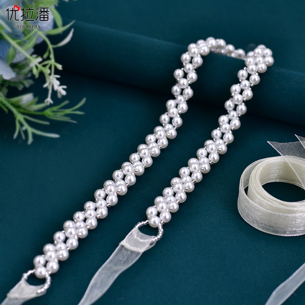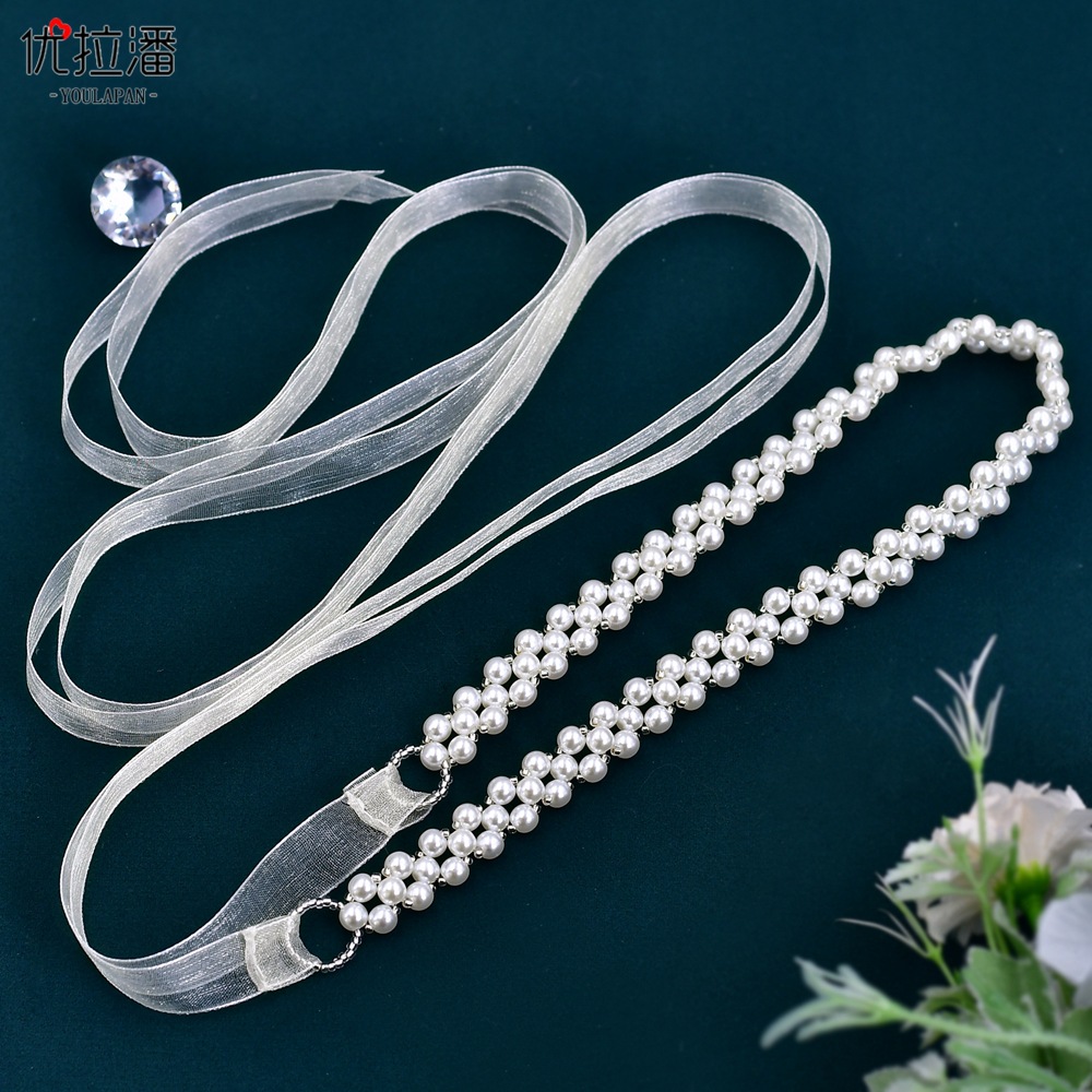 Youlapan S34 여성용 진주 허리 체인 거들 웨딩 드레스 장식 쉬폰 원사 레이스 유럽과 미국의 얇은 벨트스토어 가기