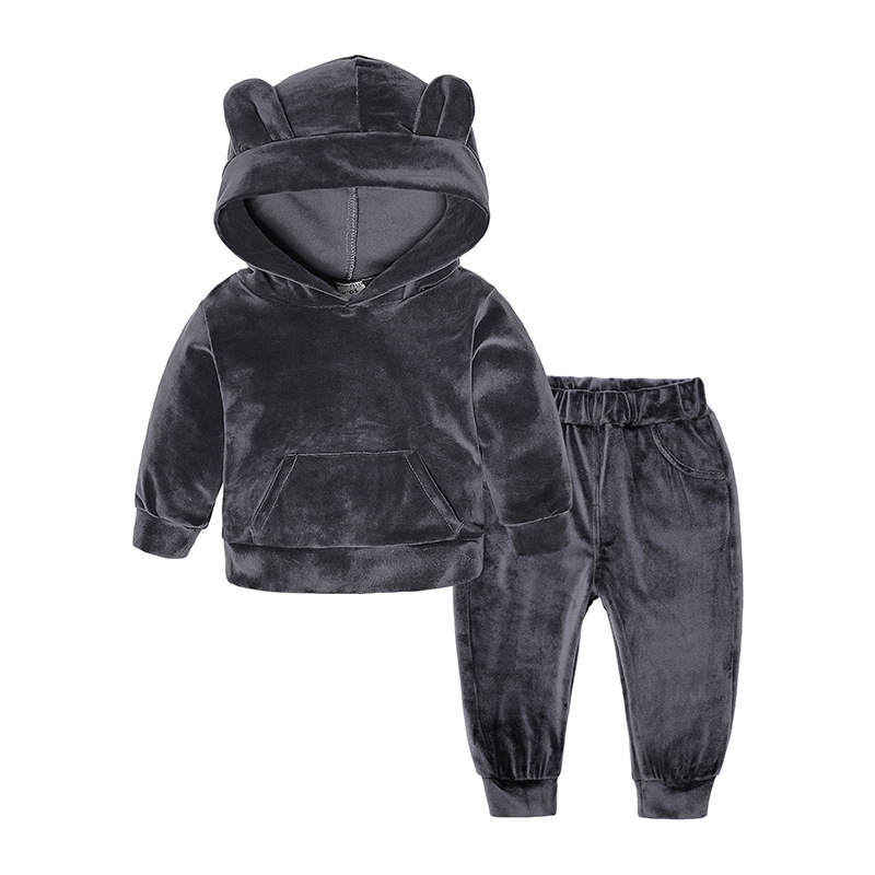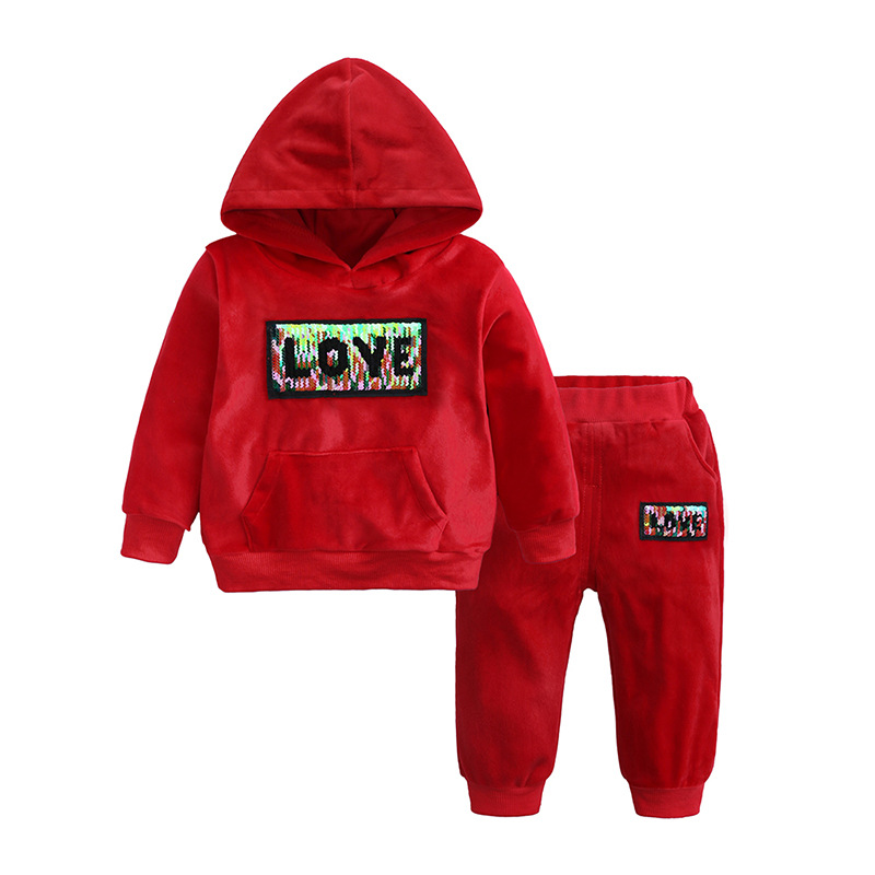 【款式】儿童套装男女童秋冬装中小童金丝绒两件套小孩卫衣服装批发潮