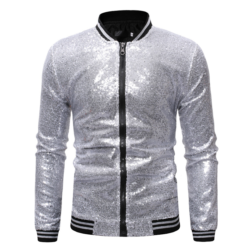 해외 무역 남자의 플러스 사이즈 AliExpress 느슨한 스팽글 댄스 옷 지퍼 카디건 재킷 ZT-JK23
