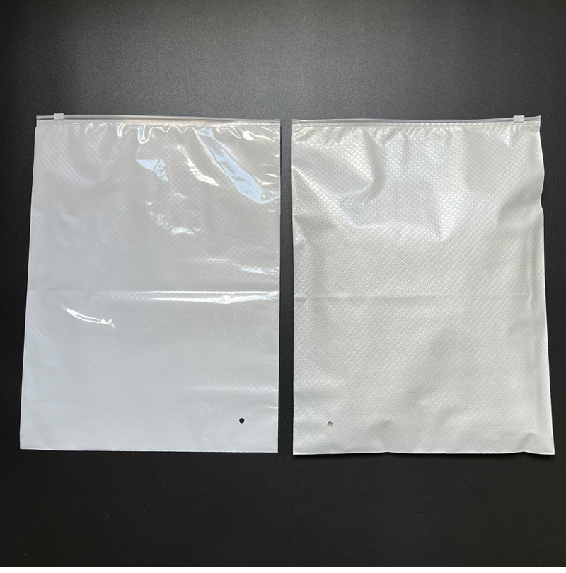 재고 PE 의류 지퍼 가방 빈 투명 자체 밀봉 대형 포장 가방 바지 보관 플라스틱 클립 체인 가방