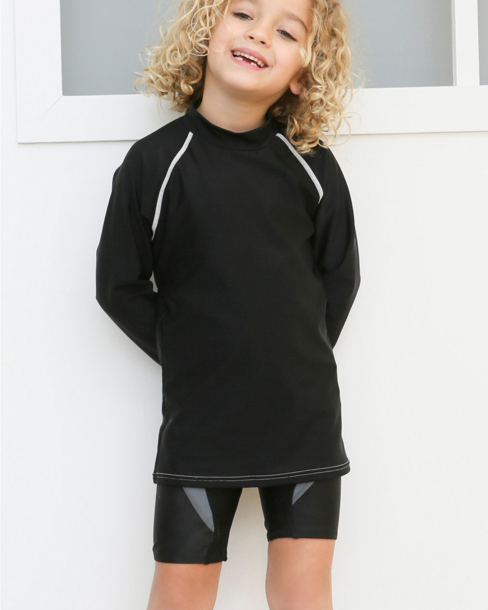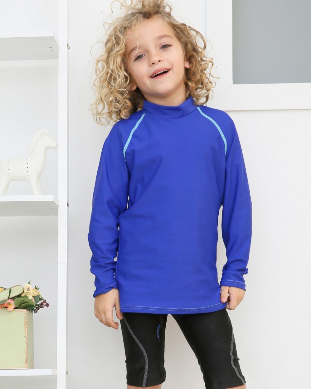 순수한 색 줄무늬 어린이 소년 한국 수영 다이빙 세트 느슨한 톱 싱글