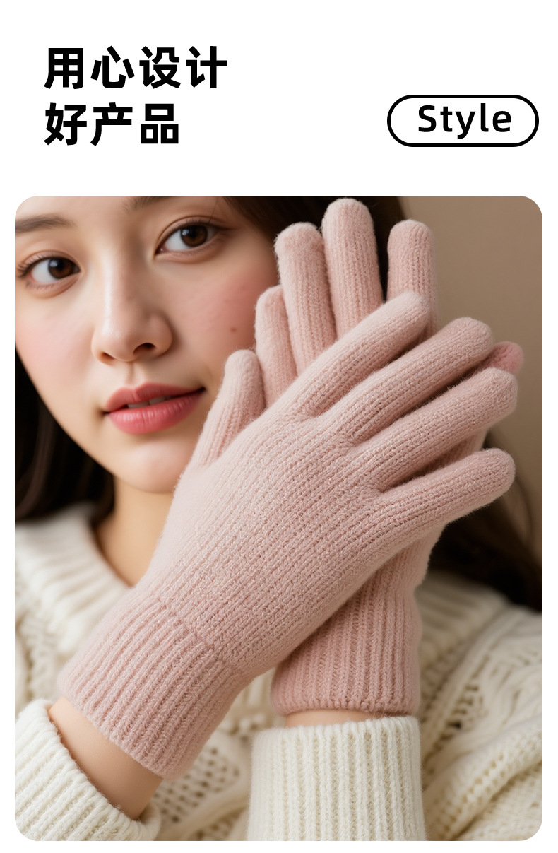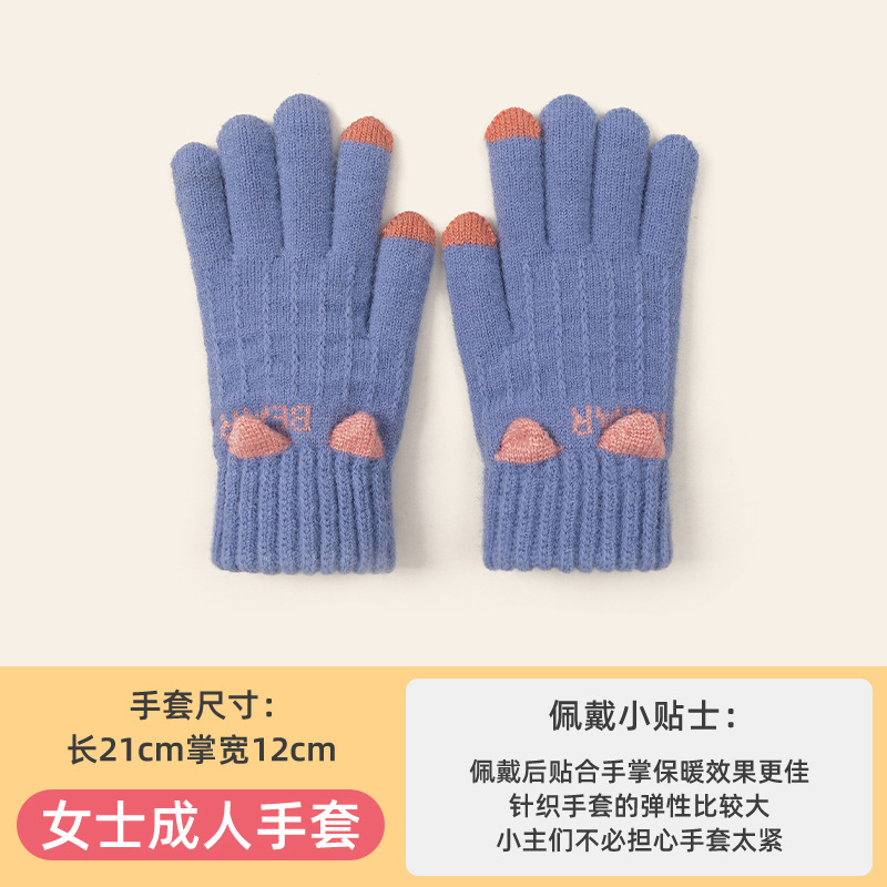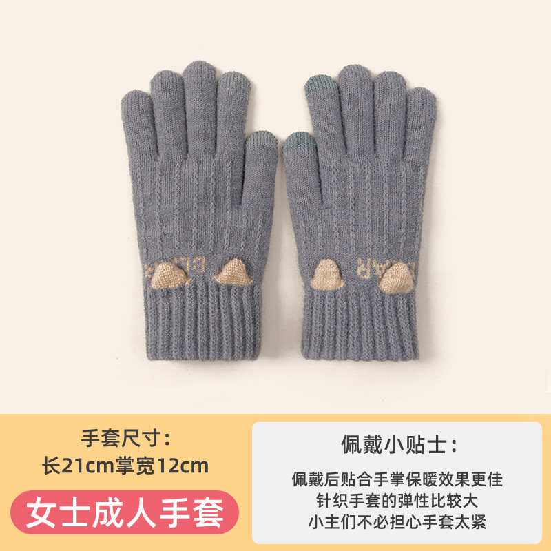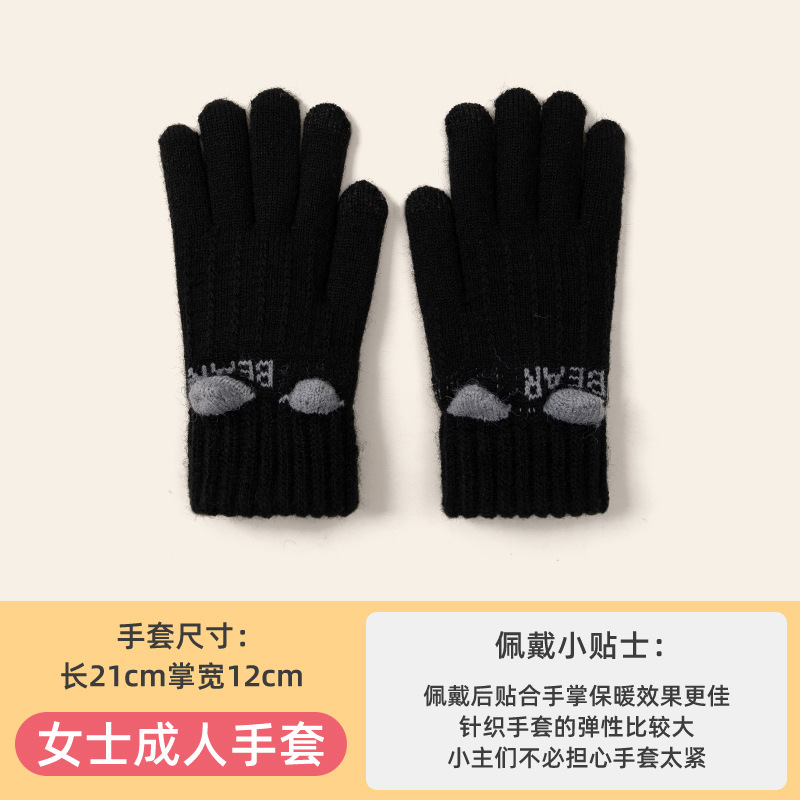 장갑 여성의 가을과 겨울 니트 감기 따뜻한 승마 사이클링 학생들을위한 두꺼운 터치 스크린 다섯 손가락 장갑