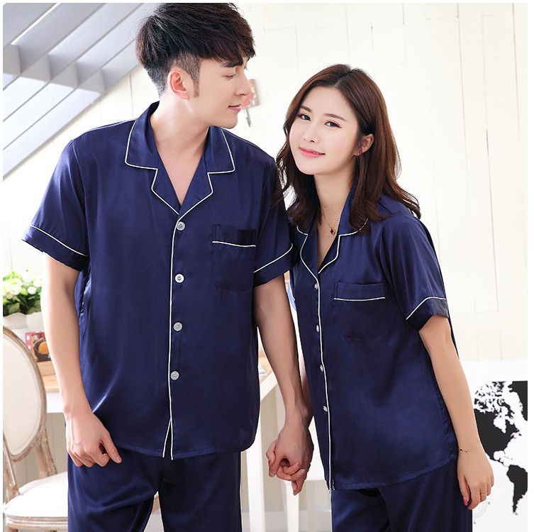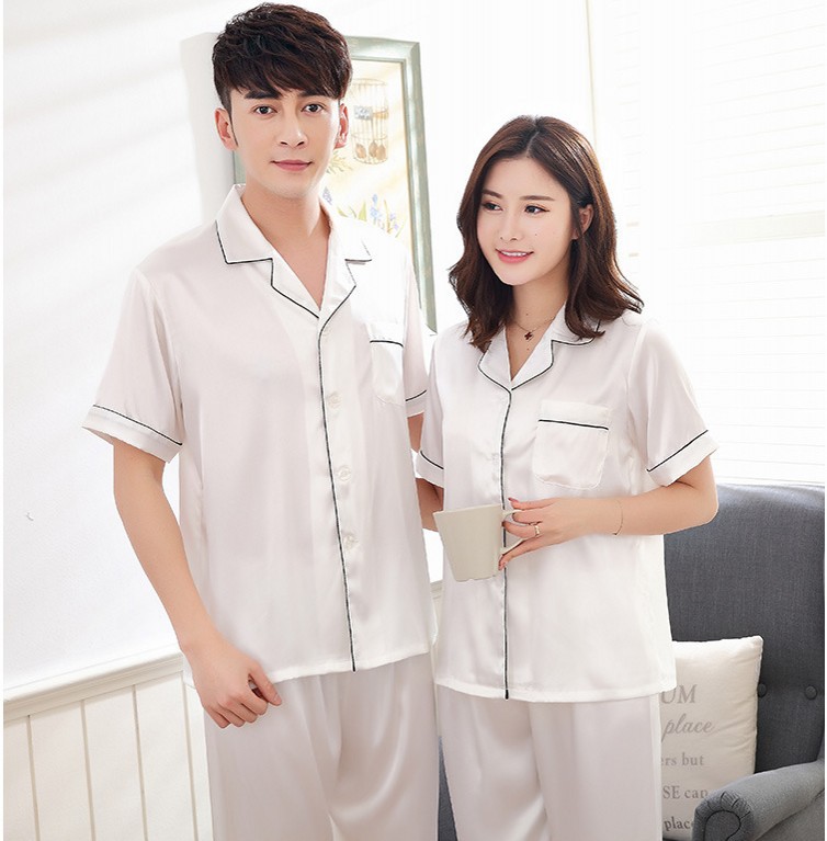 커플 잠옷 여자의 여름 반팔 바지 느슨한 뚱뚱한 200 진 아이스 실크 단색 홈 세트 얇은스토어 가기