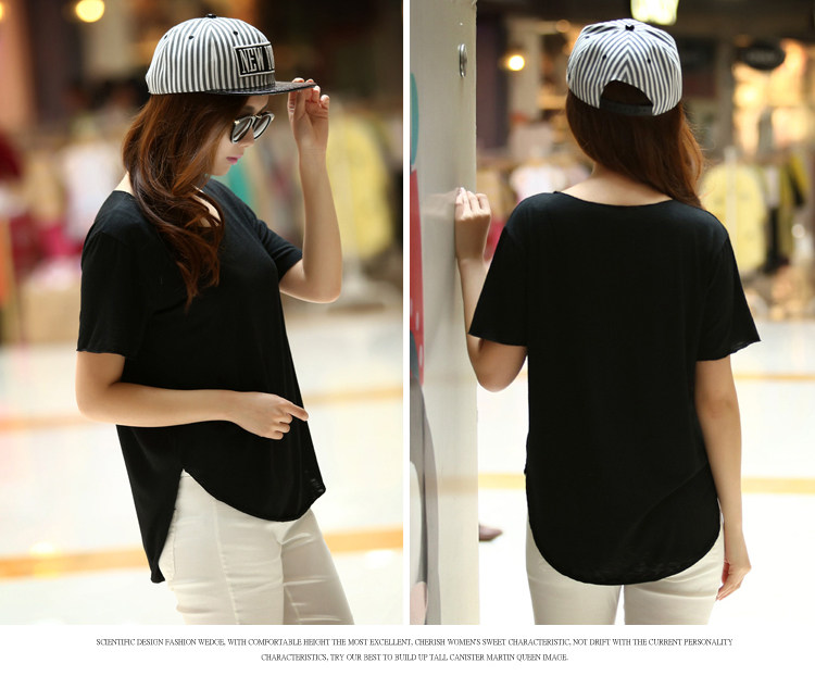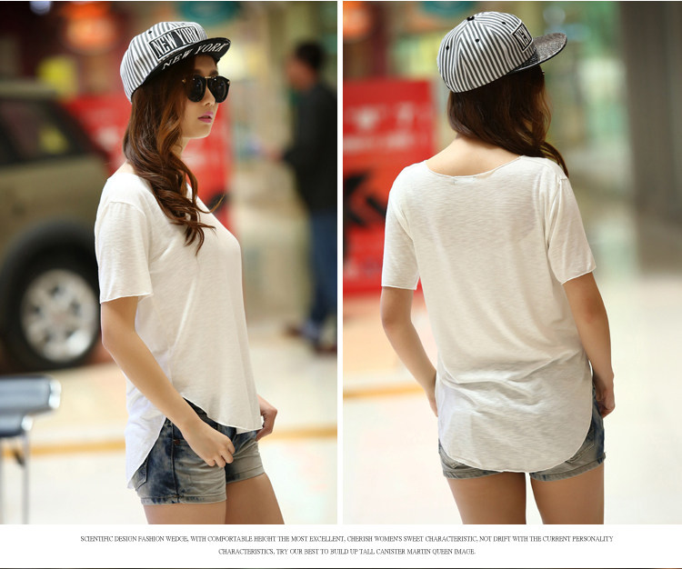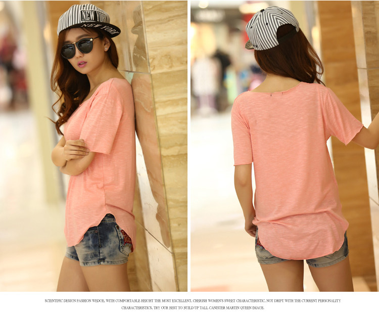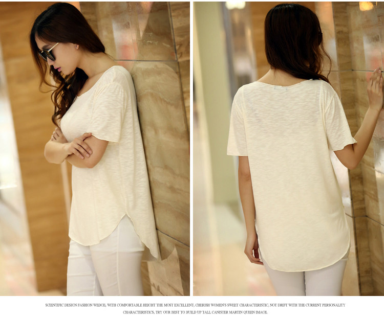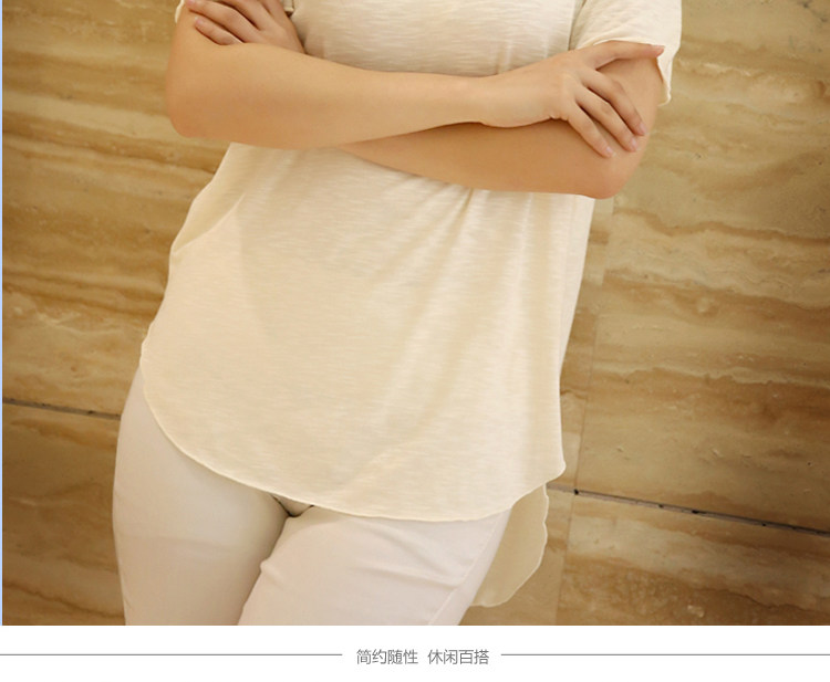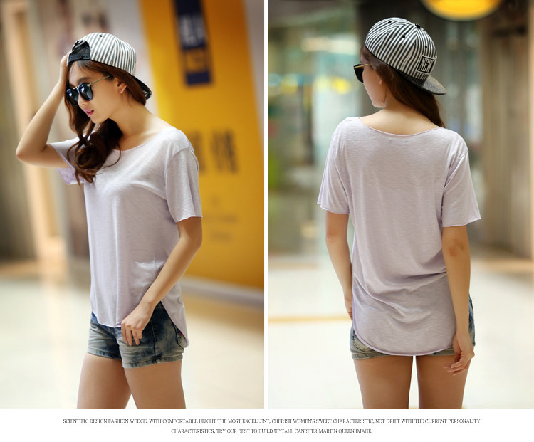 처리 맞춤형 봄과 가을 여름 새로운 스타일 여성 학생 캐주얼 탑 소매 라운드 넥 느슨한 플러스 사이즈 슬러브 면 티셔츠